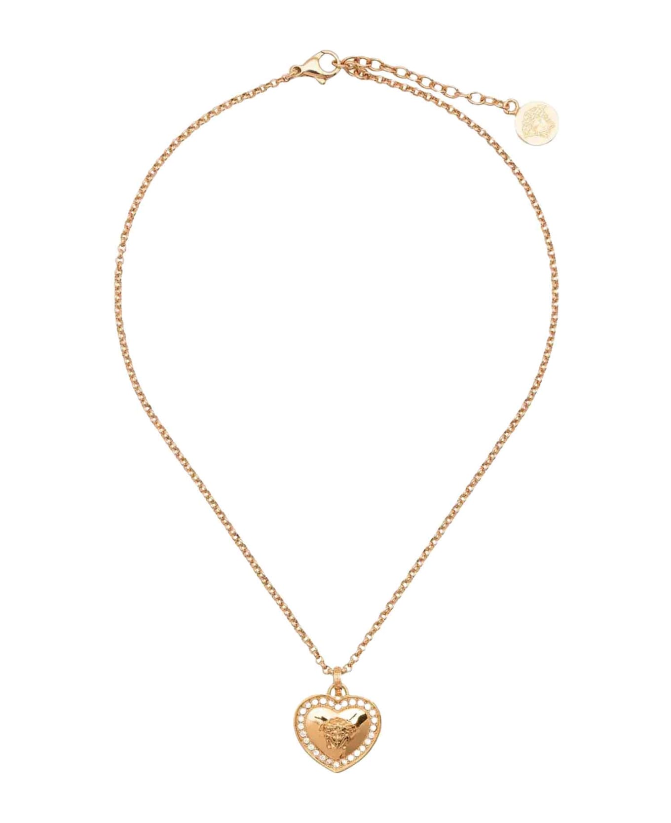 Gold necklace unisex kids. Medusa head motif, crystal decoration and adjustable chain. Crystals 100%, Metal 100%