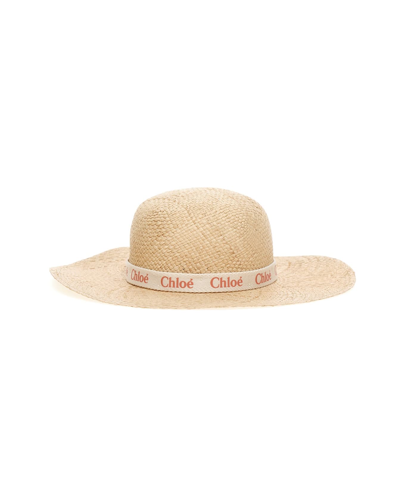 Straw hat with grosgrain band and a logo print. Composition: