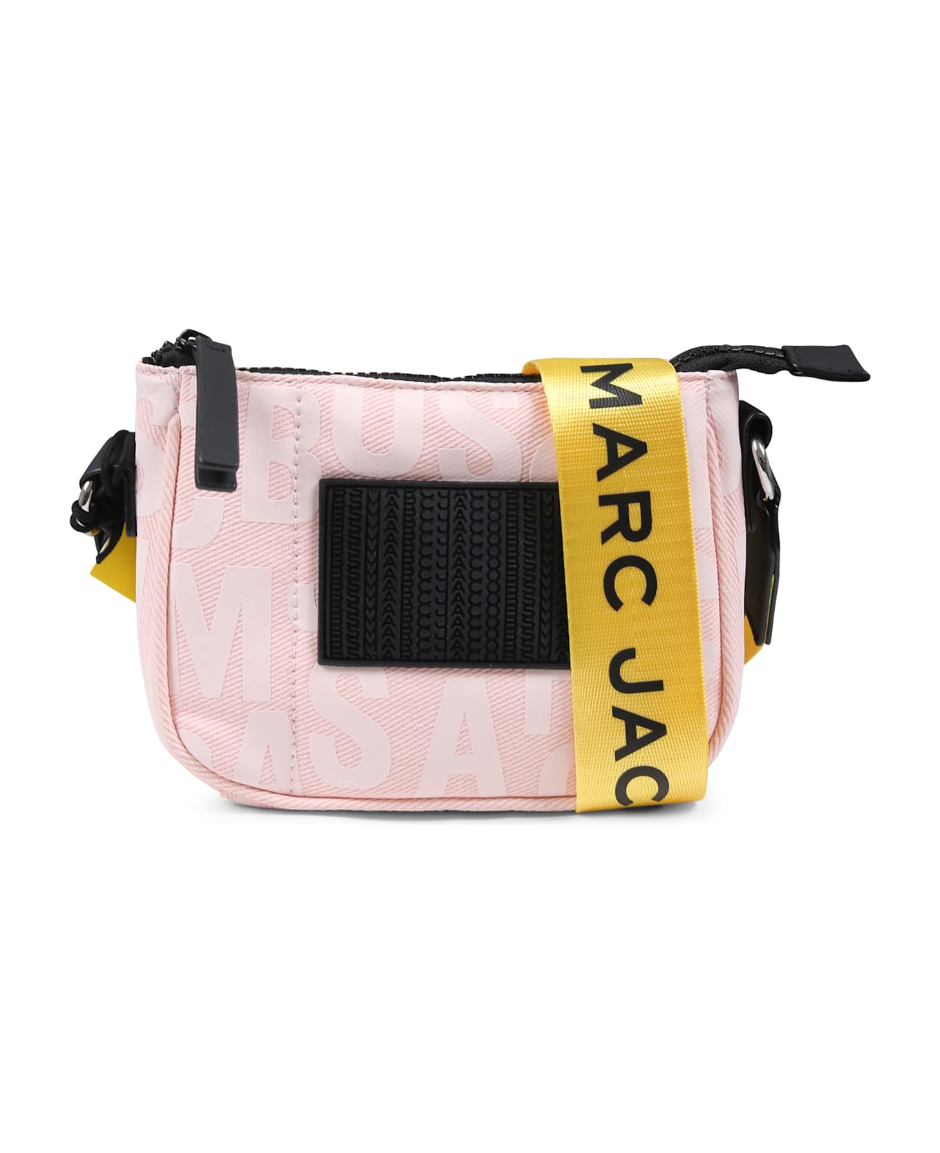 Pink bag with top zip, adjustable shoulder strap and flower-shaped pendant. It is embellished with all-over logo and black logo patch applied on the front.
