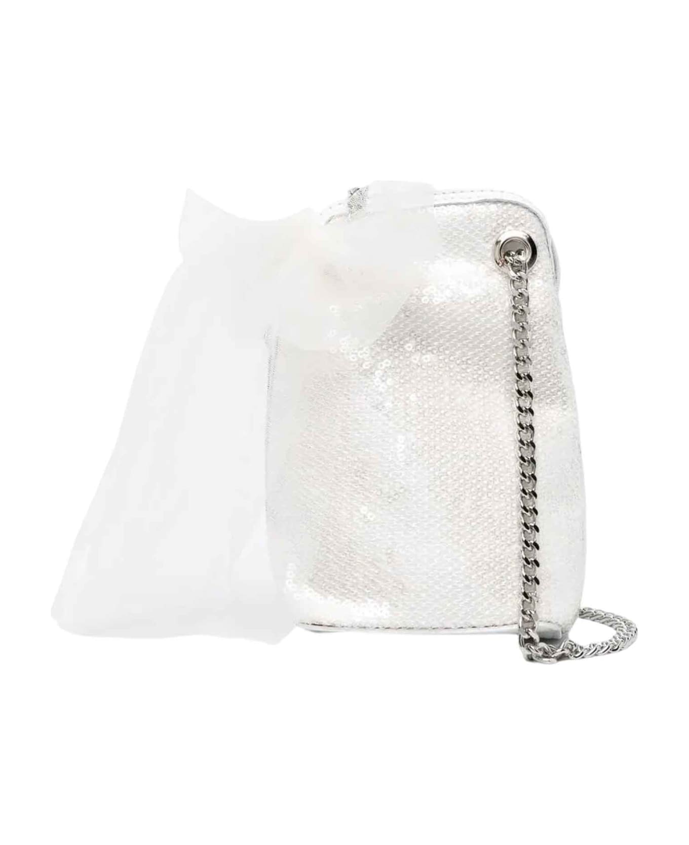 white bag girl. Tulle border, snakeskin effect, silver-tone details, chain shoulder strap and main compartment. Polyester 100%, Calf Leather 100%