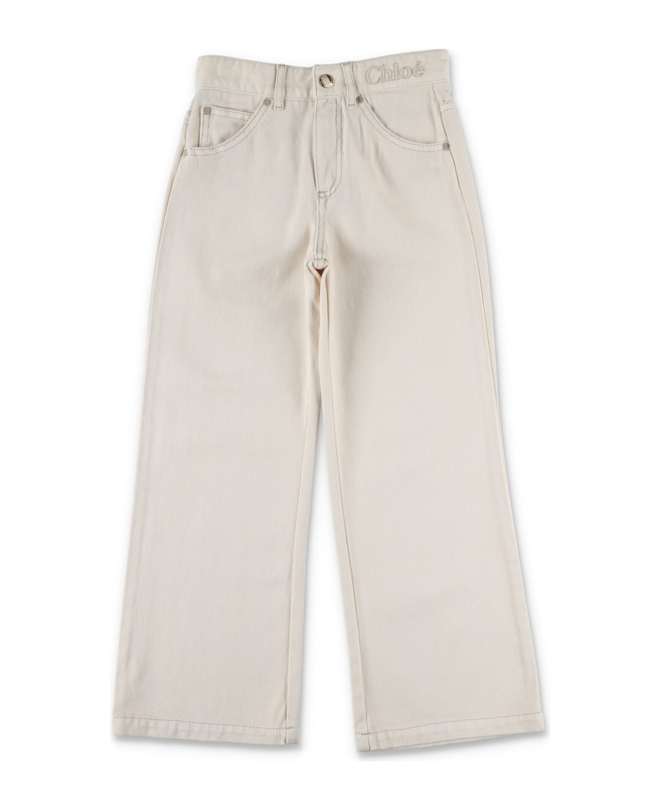 Cotton Flare Denim Pants By Chloé. Featuring: High Waist Button And Zip Fastening Belt Loops Logo Embroidery At Front Five Pockets Flared Fit