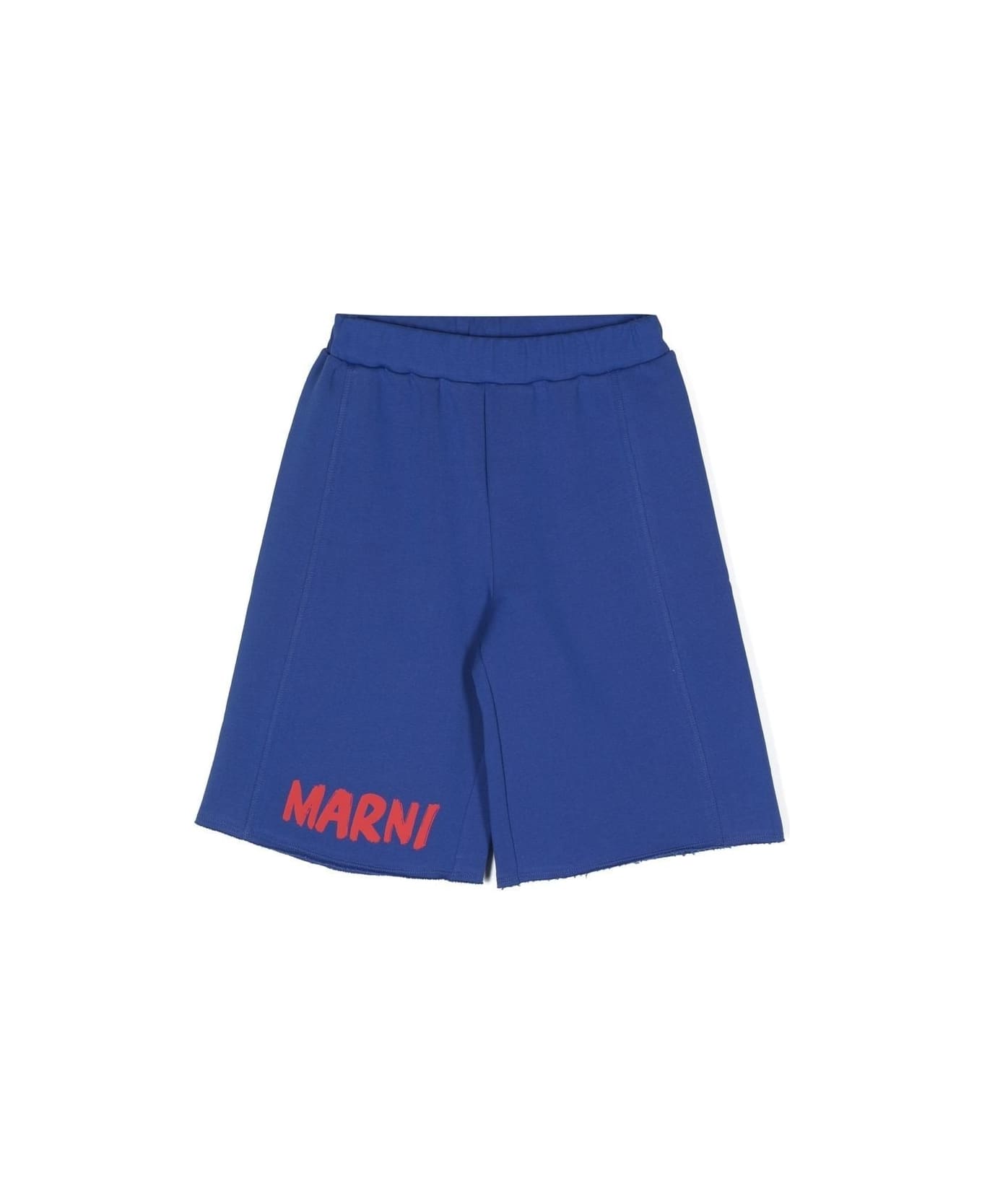 logo-print track shorts from MARNI KIDS featuring blue, cotton, logo print at the leg, elasticated waistband, straight leg and raw-cut hem. Composition: Cotone, 100%