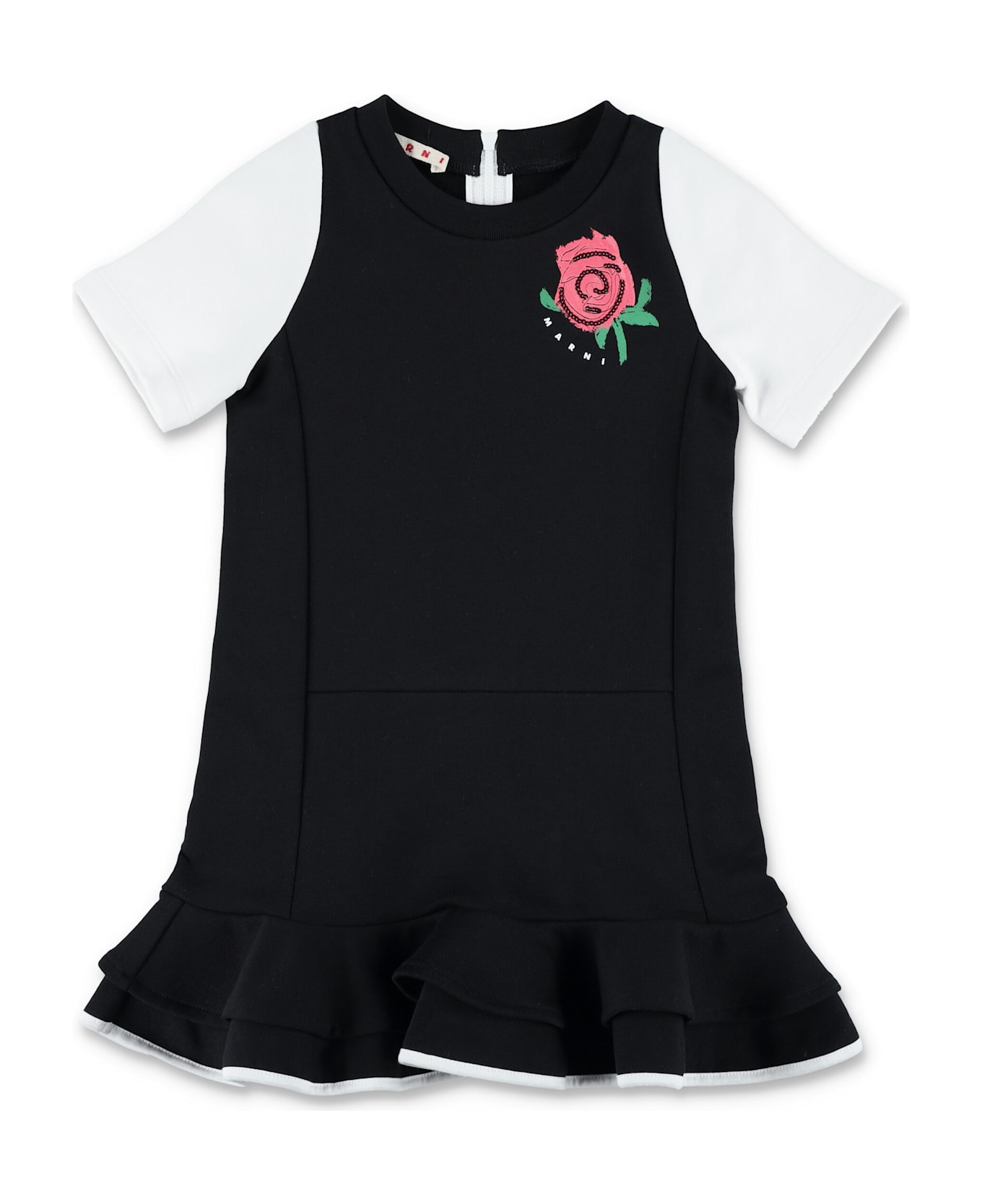 This Marni Dress Combines Playful Charm With Refined Design. Crafted From Soft Jersey, It Features A Clean Silhouette Enhanced By Contrast Short Sleeves And A Ruffled Hem For Added Movement. The Floral Print On The Chest Delivers A Signature Touch, Perfect For Both Everyday Wear And Special Moments. Soft Jersey Fabric