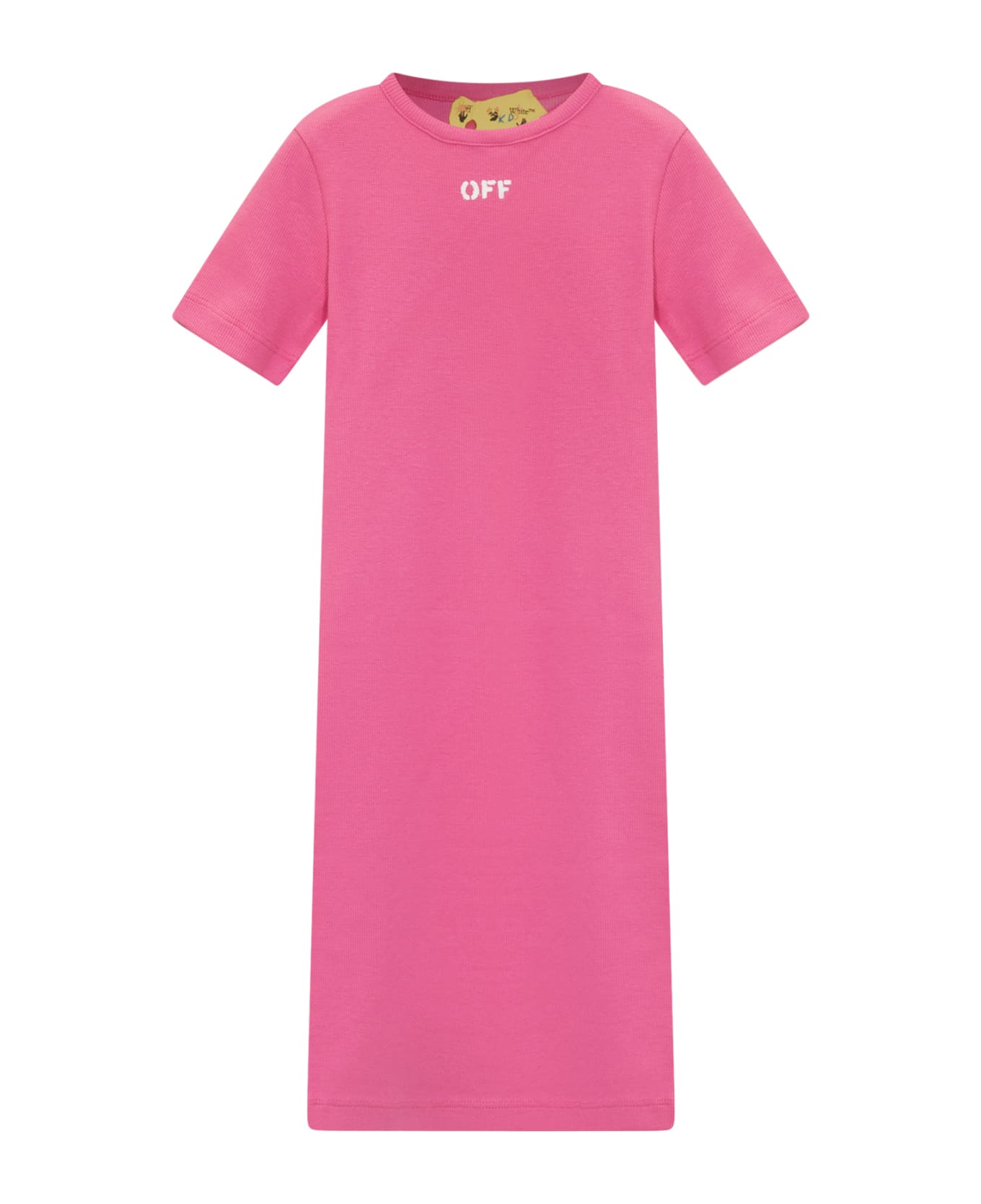 Midi dress. Round neck. Ribbed collar. Short sleeves. Stretch ribbed knit. Logo Off on the front. Composition: 95% Cotton, 5% Elastane
