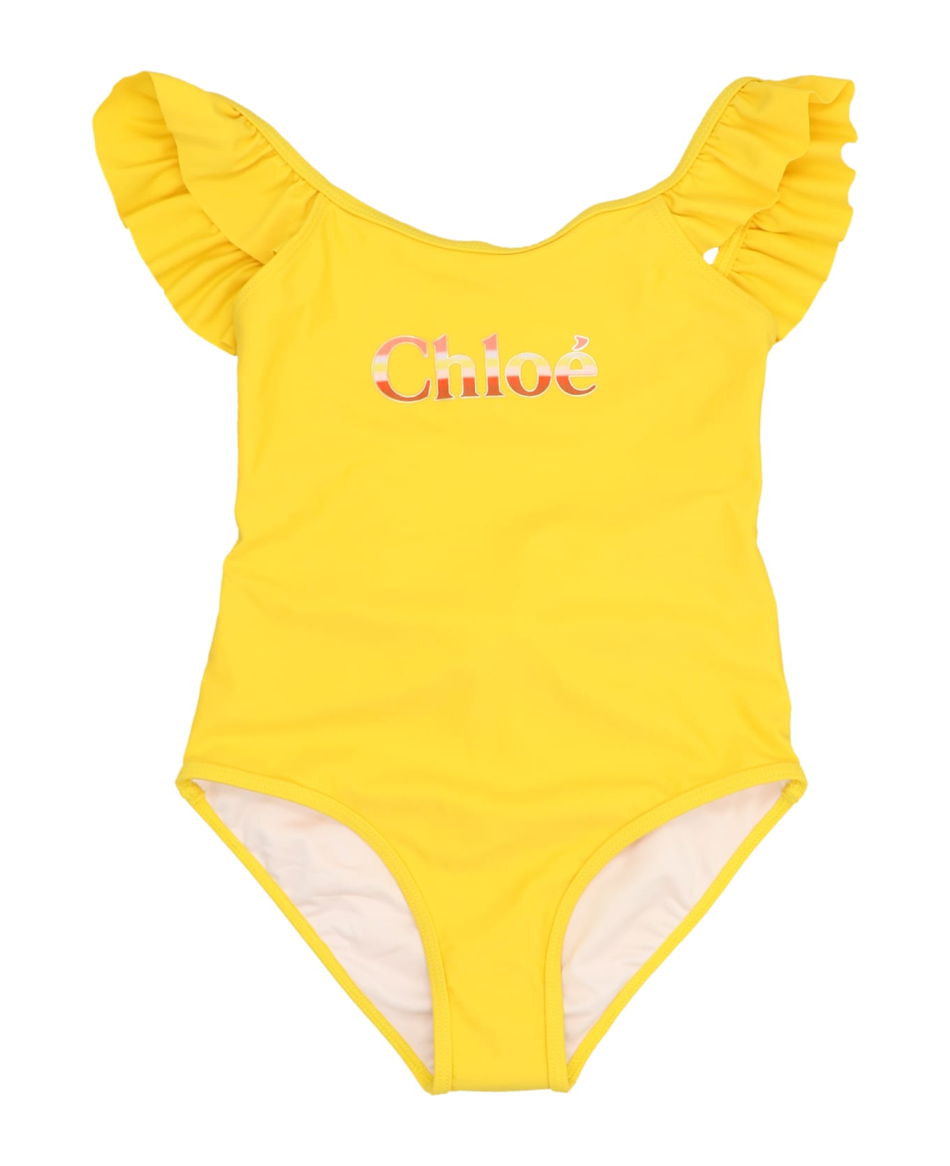 One-piece swimsuit in a stretch fabric with front logo print and flounced shoulder straps. Composition: 78% polyamide 22% elastane