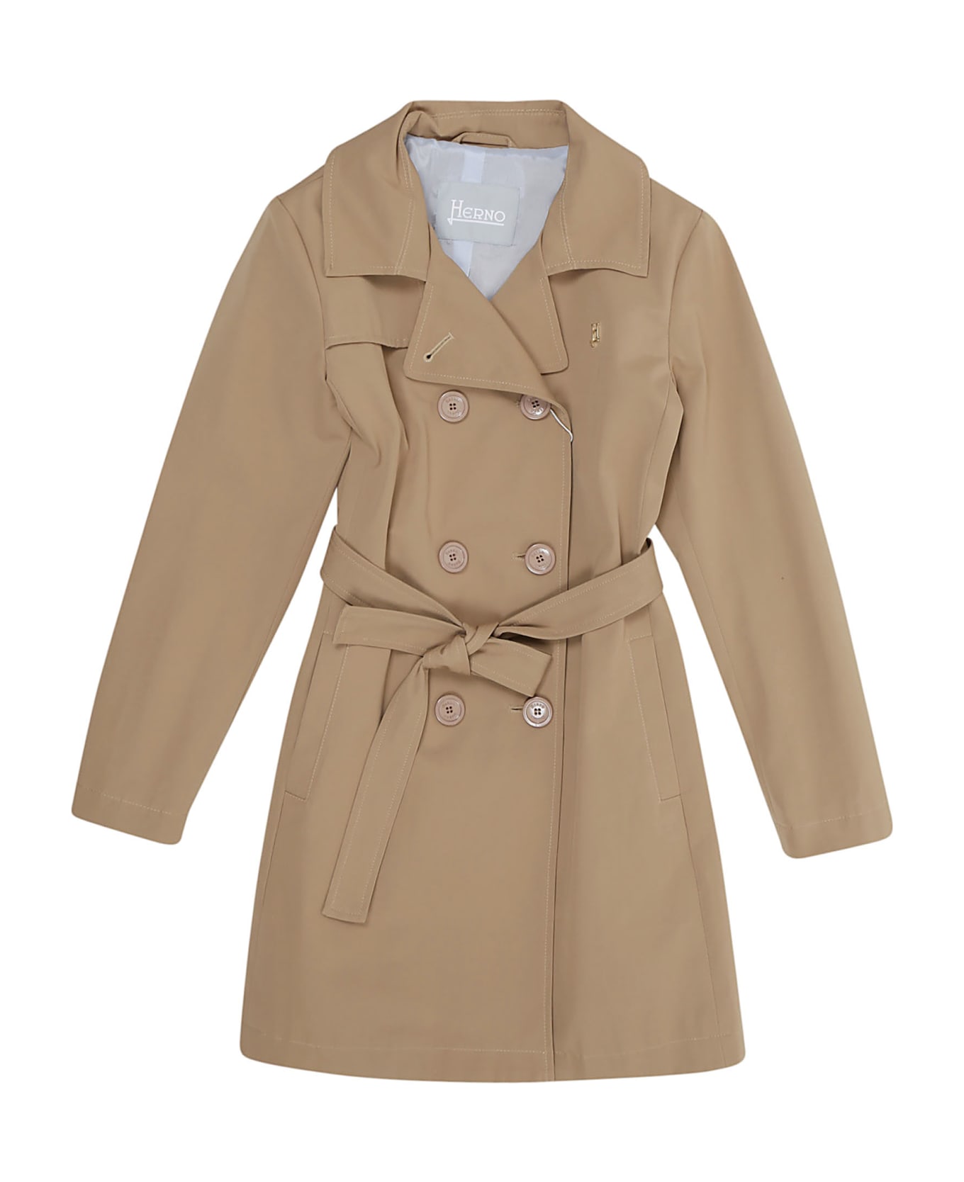 Cotton trench coat BY HERNO KIDS. Double-breasted closure with buttons; pointed lapels; long sleeves; waist belt. Regular fit design.