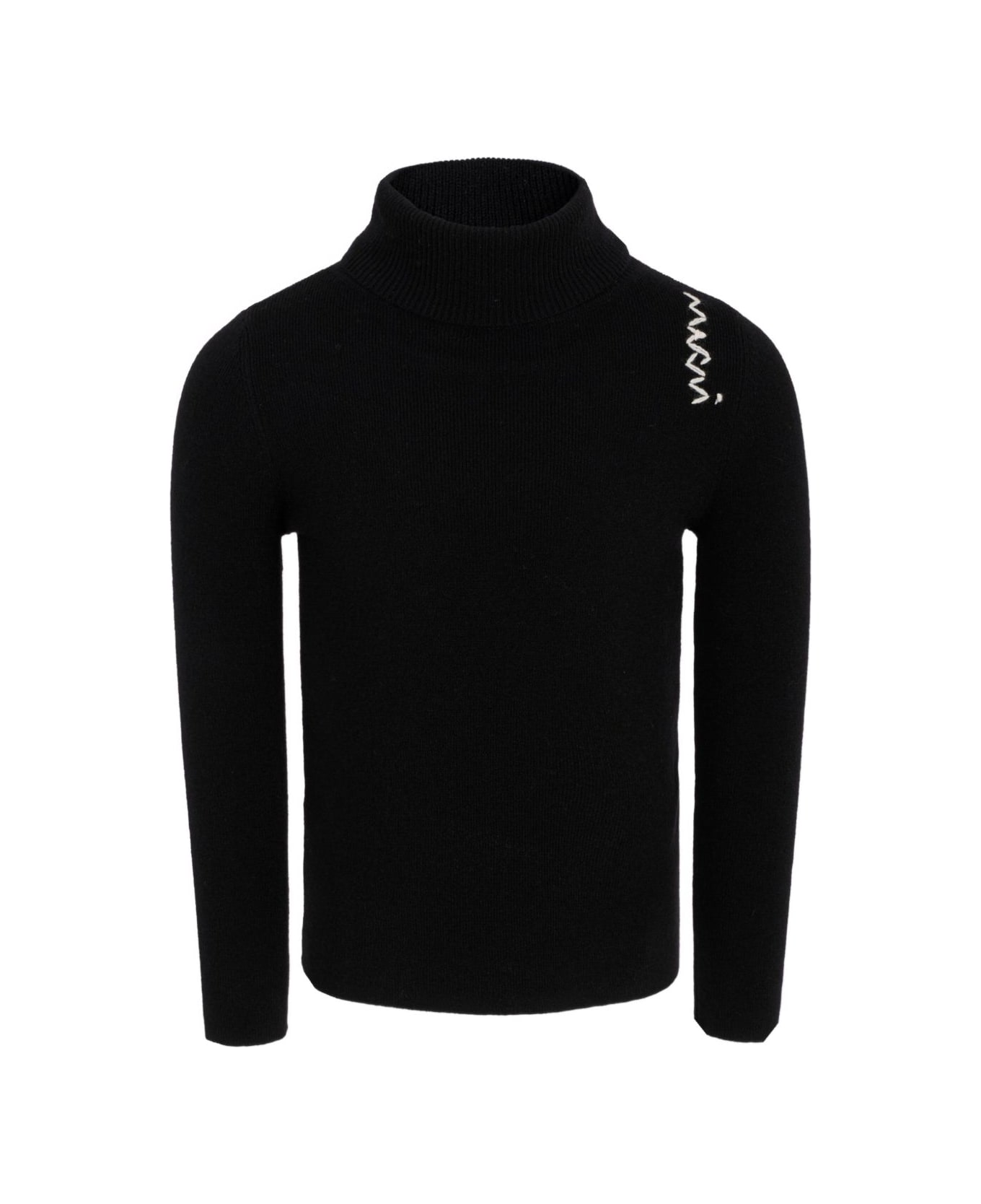 Marni Kids Black long-sleeved sweater with shoulder motif and high neck Composition: 50% Wool, 30% Polyamide, 20% Acrylic
