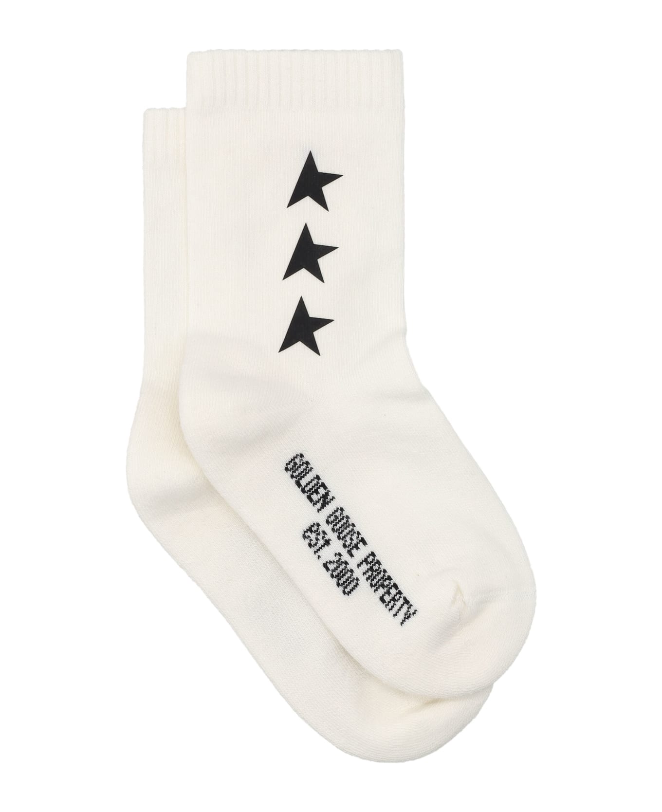 Socks By Golden Goose Kids. Featuring: Ribbed And Elasicised Collar "golden Gooese Property Est. 2000" Lettering On Bottom Three Iconic Contrasting Stars On The Side