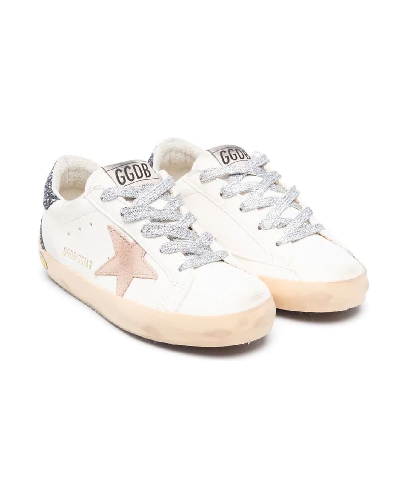 White leather sneakers calf leather distressed finish signature star patch to the sides round toe front lace-up fastening contrasting heel counter flat rubber sole