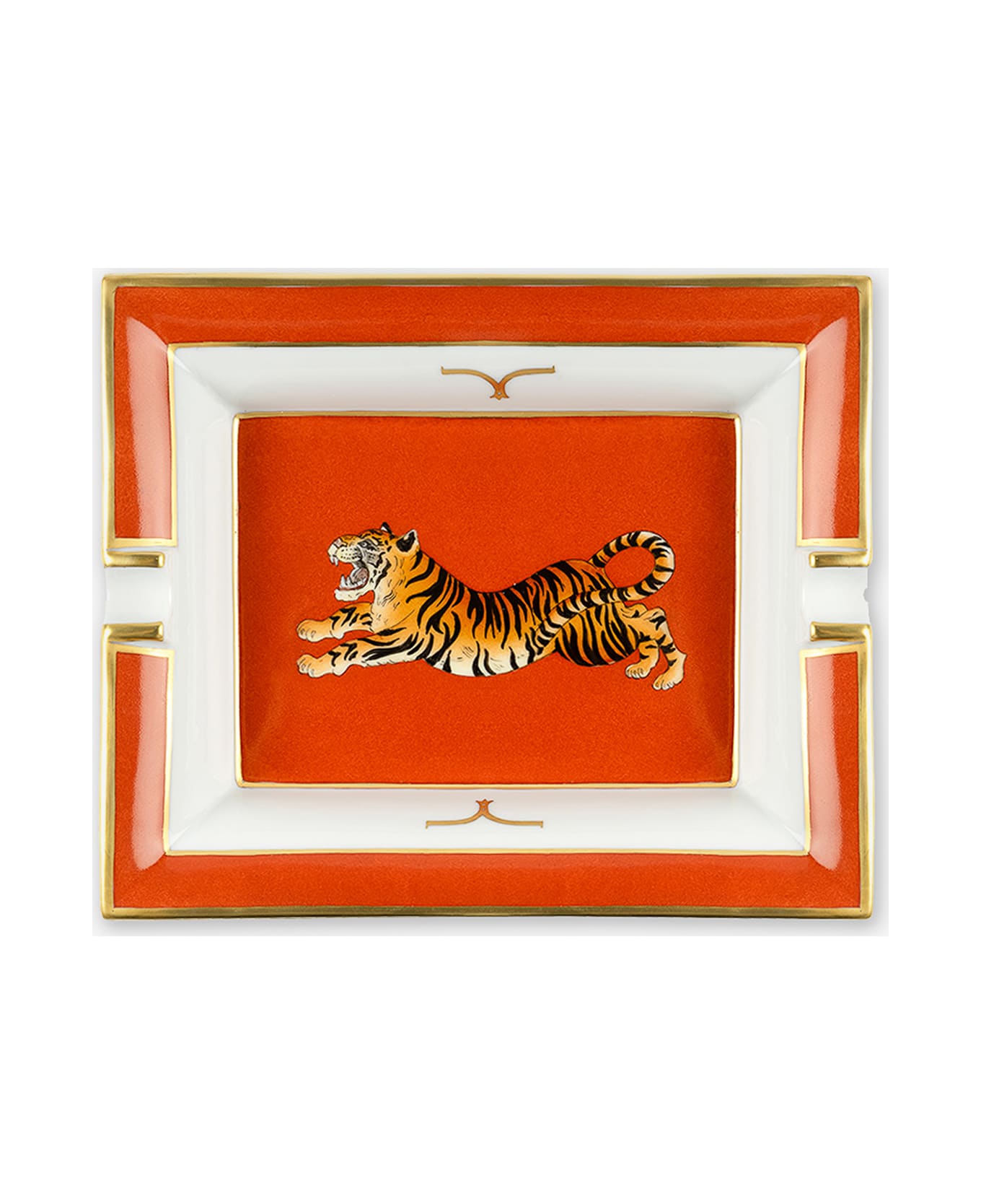 The Porcelain Ashtray "Crouching Tiger" was beautifully hand painted by a Milanese artisan and is made of finest Limoges porcelain.
