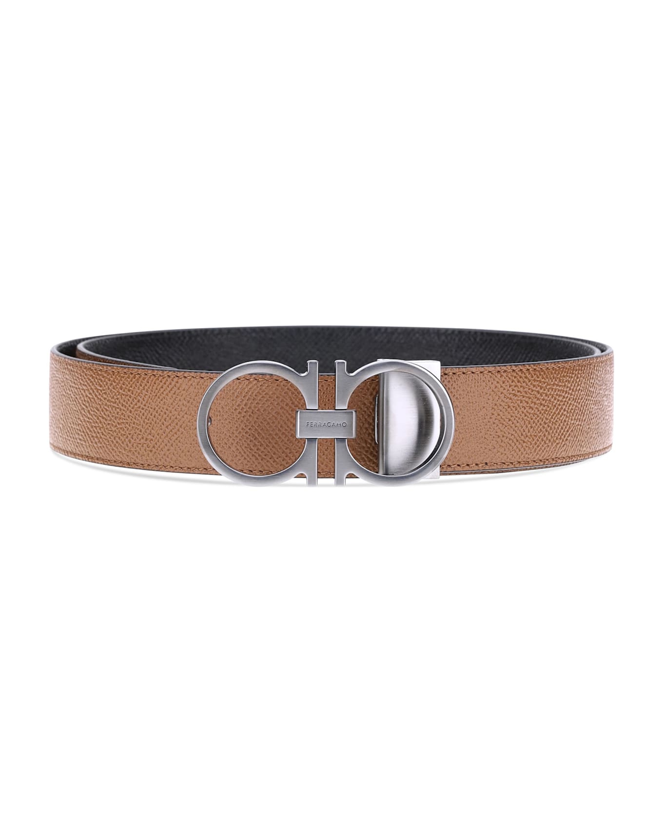 Ferragamo's gancini reversible leather belt features a three-dimensional buckle with the brand's iconic gancini logo. the reversible monochrome grained leather design offers two style options, making it versatile and refined. Composition: 100% % Calf Leather Bos Taurus