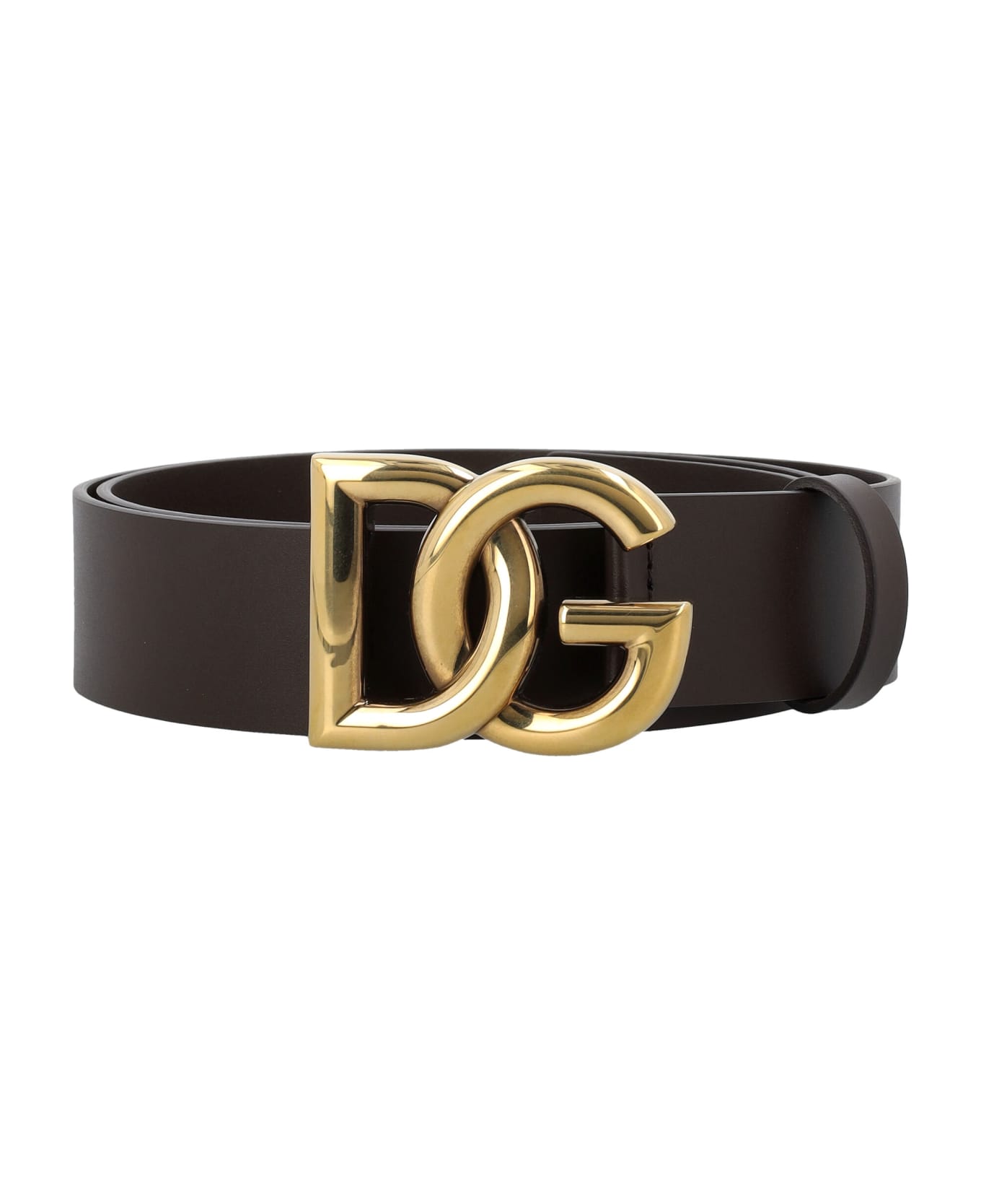 Lux Leather Belt With Crossover Dg Logo Buckle By Dolce&gabbana. Featuring: