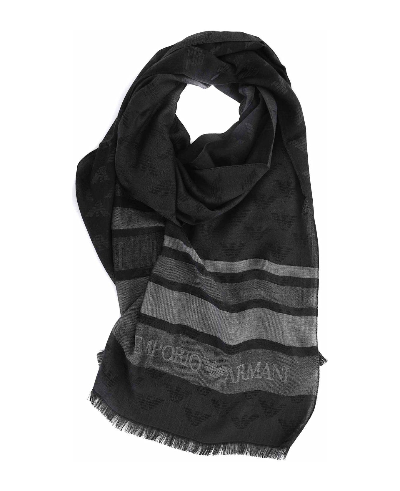 Logo Jacquard Striped Frayed Scarf from Emporio Armani