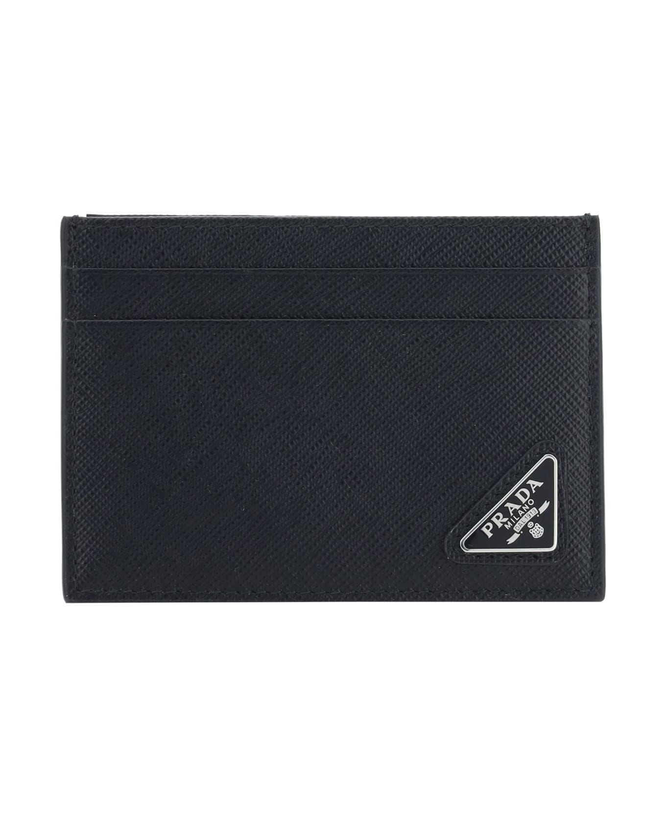 Prada's leather card holder is a compact and stylish accessory perfect for everyday use. featuring card slots on the front and back, it combines functionality and style in an essential design. the iconic enameled triangular plaque with the brand's signature applied on the front adds a distinctive and recognizable touch, an expression of prada's refined aesthetic. Composition: 100% % Calf Leather Bos Taurus