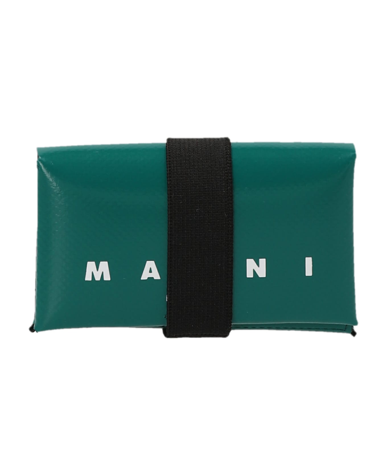 Wallet made in plastic material with front logo print and an elastic closure. Composition: 100% polyester