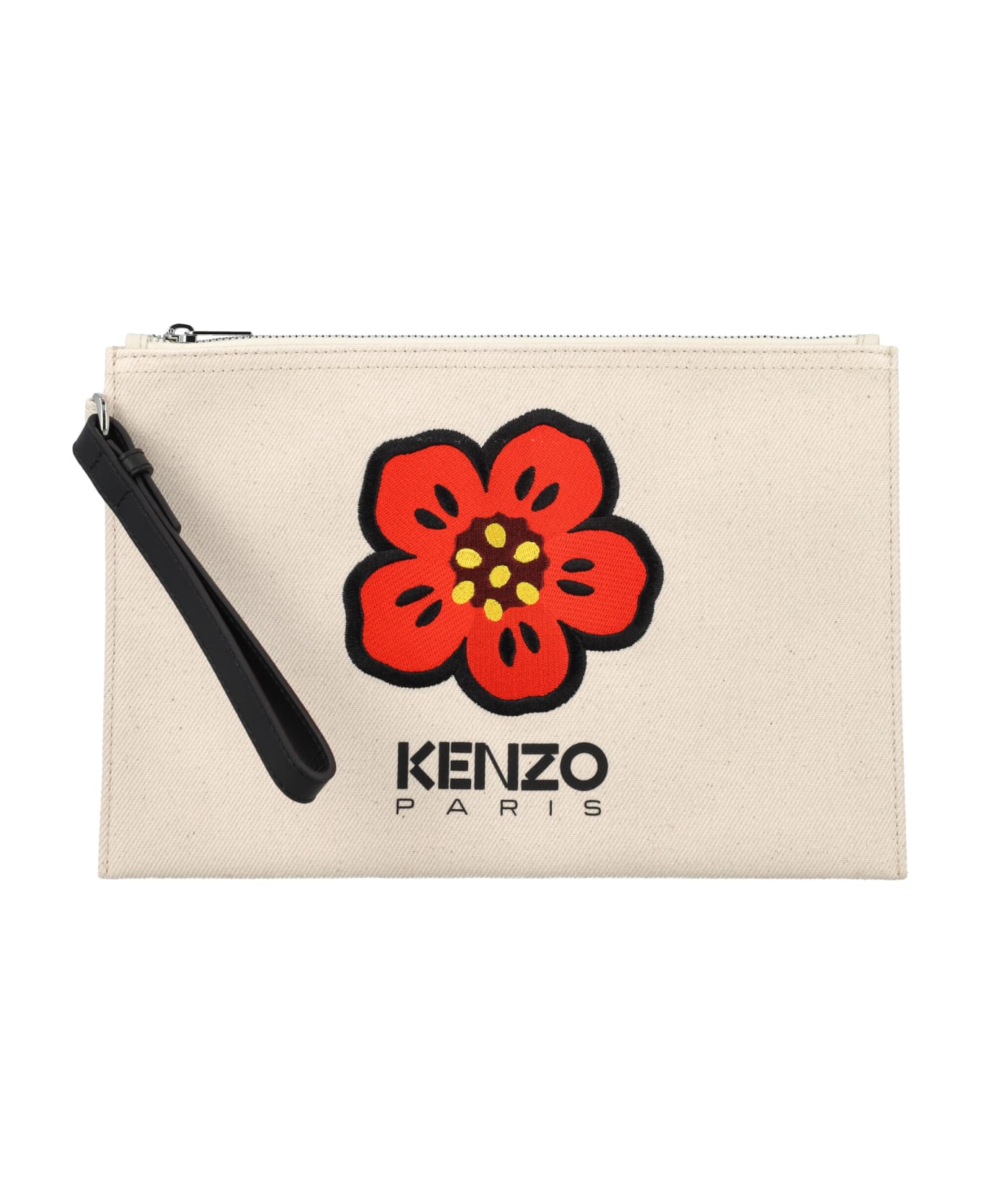 "boke Flower" Clutch By Kenzo. Featuring: Large Canvas Clutch Bag "boke Flower" Logo Embroidered On The Front Kenzo Paris Logo Printed On The Front Kenzo Paris Label On The Back One Internal Credit Card Compartment Removable Zip And Strap Closure Height: 20cm Lenght: 30cm
