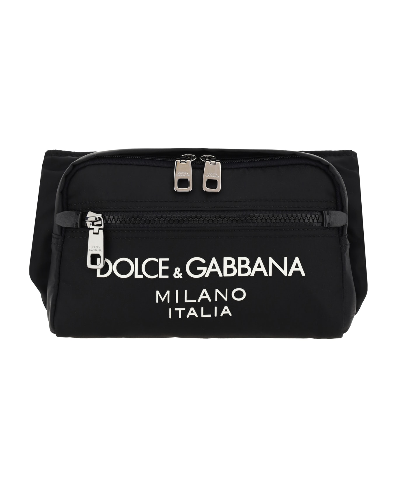 Fanny pack by dolce&gabbana, double-slider front zipper closure, zippered welt pocket on back, adjustable waistband with metal clip for closure, iconic brand monogram printed in contrast on front. Composition: 15% % Calf Leather Bos Taurus, 85% % Nylon