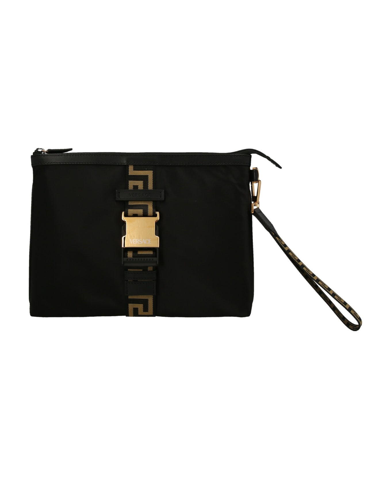 'Greca' nylon clutch bag with removable strap, buckle closure, logo, six internal card slots and inner zip pocket. Composition: 100% polyamide