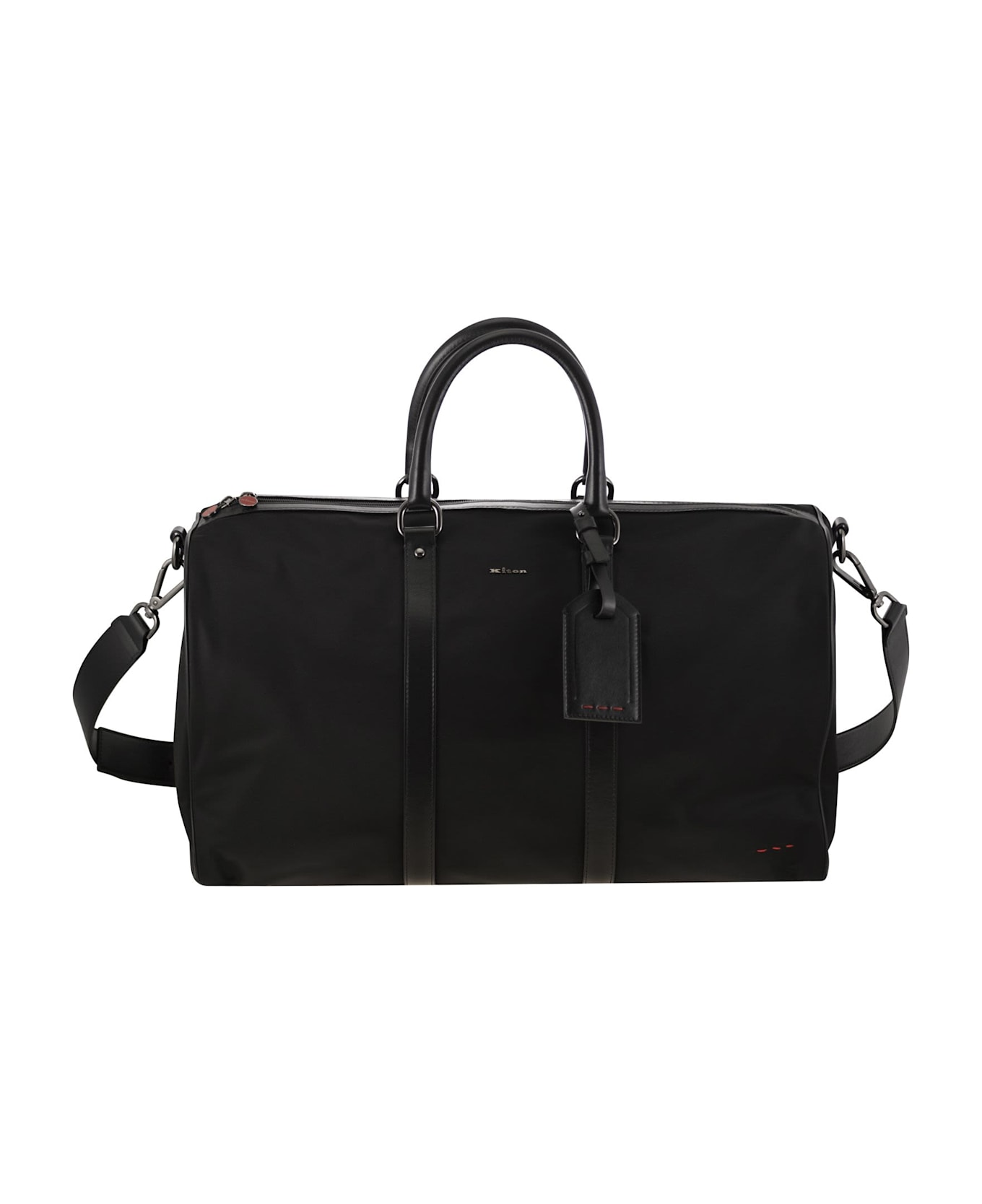 The Gym duffle bag represents a perfect combination of practicality and style, made of high-quality nylon and enriched with sophisticated leather inserts. Designed to suit both sporting events and short trips, this model offers an elegant and functional tubular structure. The leather handles and logo-embellished adjustable ribbon shoulder strap ensure comfortable and refined carrying. The main zip opening ensures security and accessibility to the spacious interior compartment, while the embroidered logo on the front adds a distinctive touch to the design. Each Kiton bag is meticulously crafted by skilled artisans in our Naples workshop. - Zip closure - Leather handles - Removable shoulder strap DESIGNER ID: UBA0085N012210100F