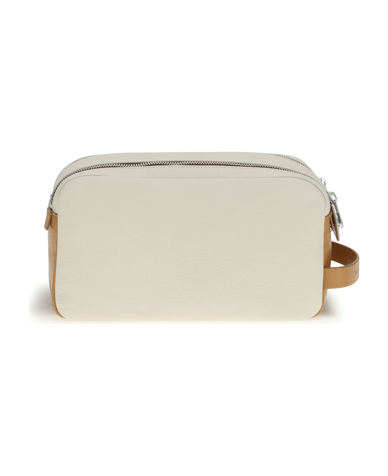 The leather beauty case by brunello cucinelli with double zipper is an elegant and practical accessory. the double zip and magnetic closure ensure security and ease of use, while the handle makes it comfortable to carry. the external zip pocket adds extra space for small items. the interior is lined with water-repellent fabric, ensuring durability and protection. in addition, all metal parts are nickel-free, for a product that combines sophistication and attention to detail.