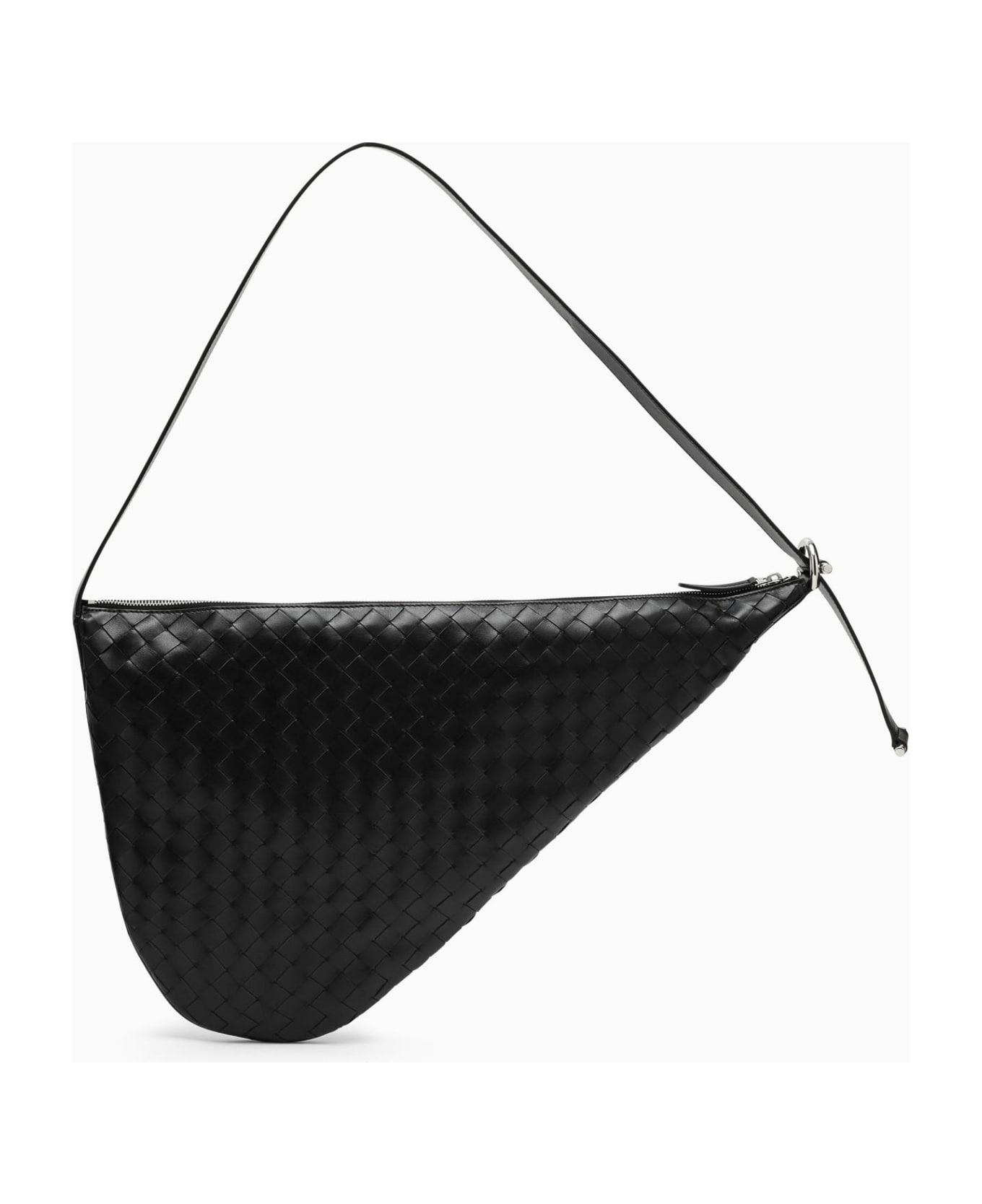 Black leather Intrecciato pattern shoulder bag from Bottega Veneta featuring a top handle, a zip fastening and silver-tone metal hardware.