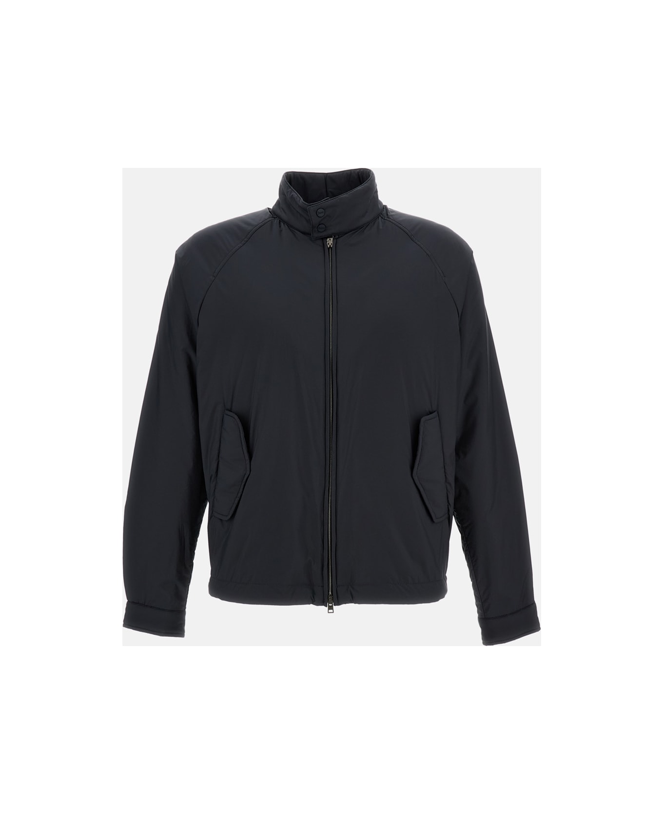 Short jacket with a contemporary design made of polyamide. Lightweight technical material. Double-slider front zip closure. Classic collar and side pockets with secure closure. Elasticated cuffs and hem for an optimal fit and wind protection. Discreet Herno logo detail. Color: Navy Blue
