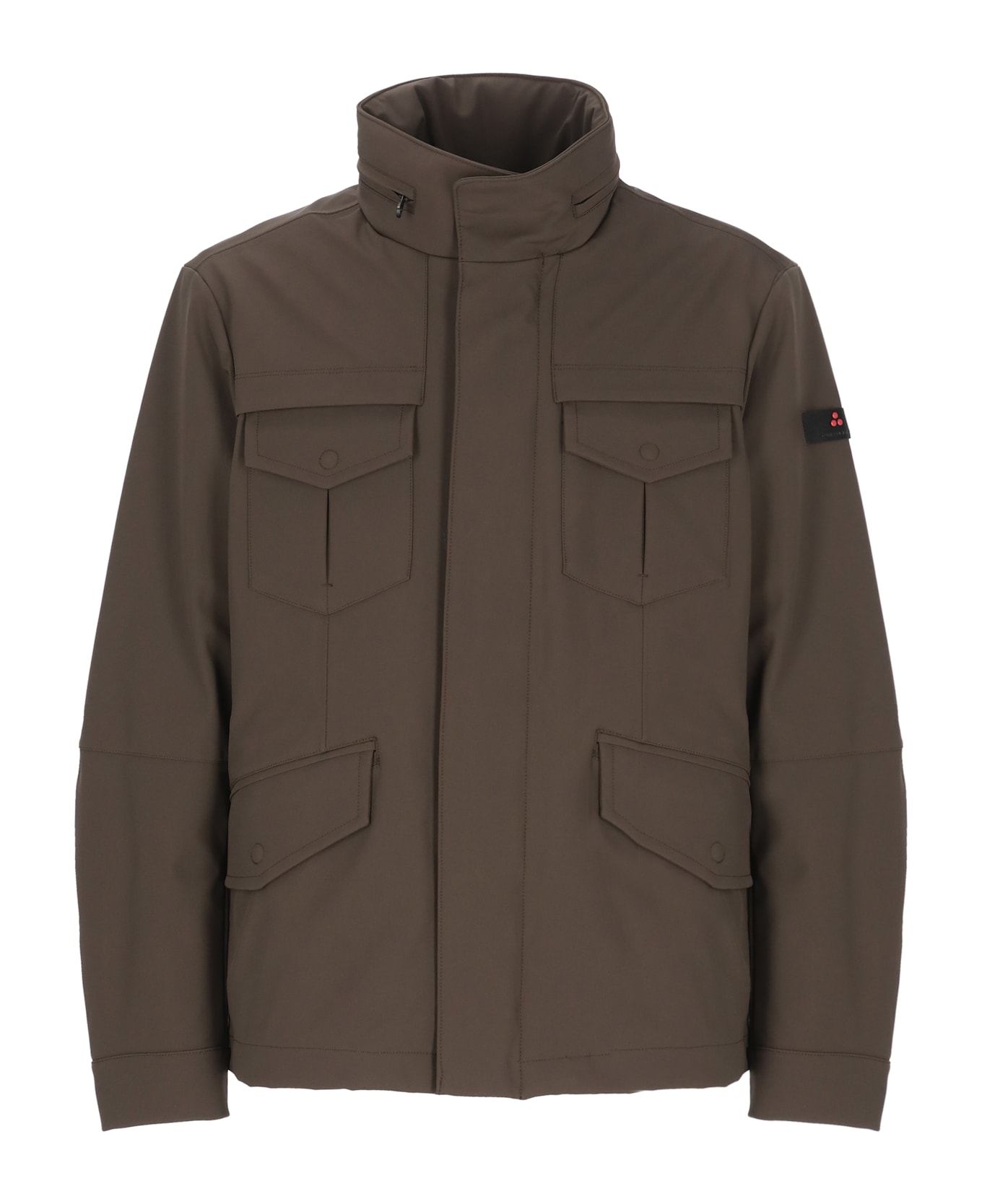 - Peuterey man's dark brown padded jacket - High neck - Long sleeves with buttons at hem - Iconic patch at left sleeve - Four front flap pockets - Front zip and snap buttons fastening