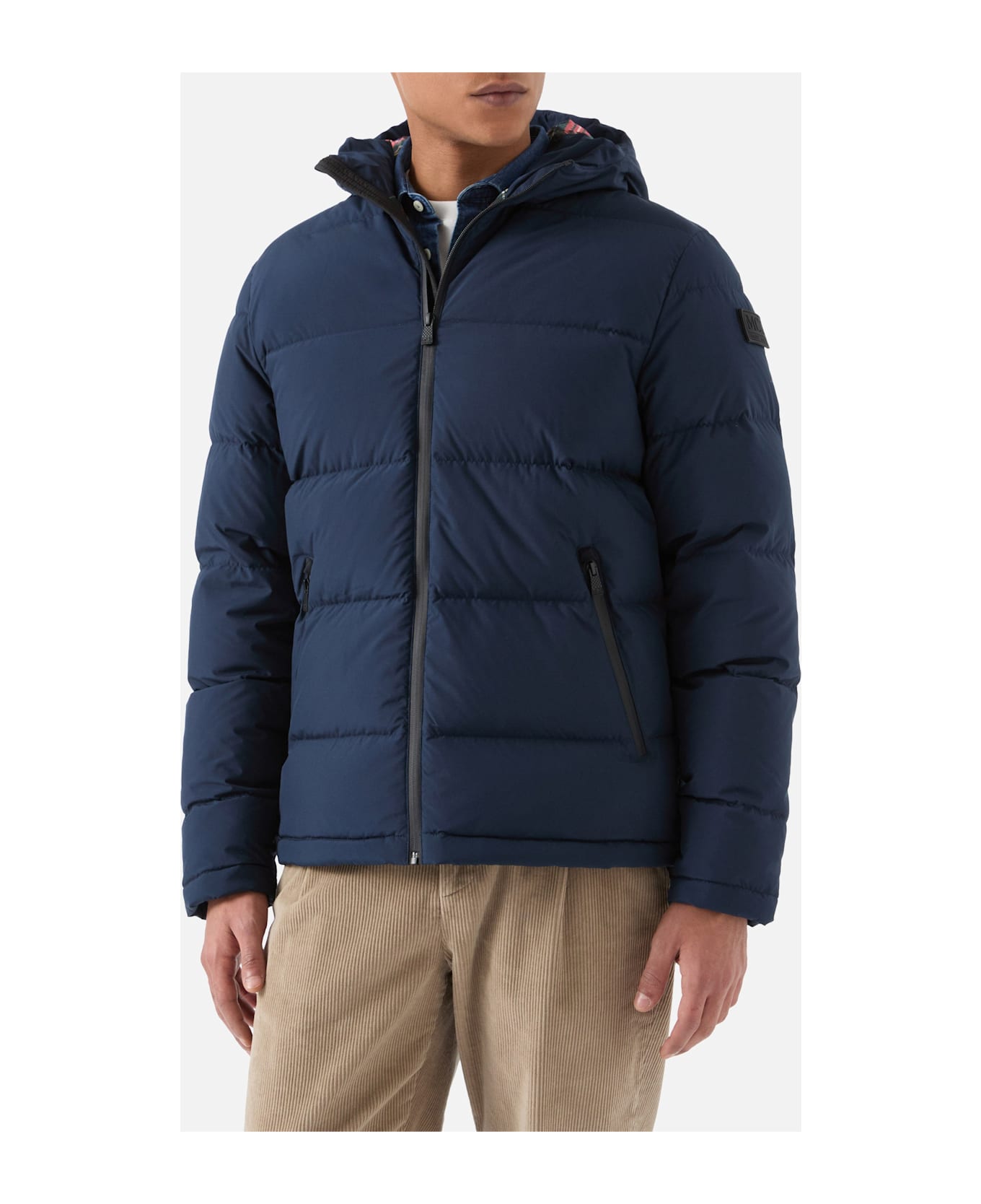 Blue navy man hooded Down Padded Jacket - Snoopy special Edition Inner Snoopy print on a tartan backround Waterproof zip on front Two pockets on front Inner Pocket Regular fit Lining composition: 100% polyestere