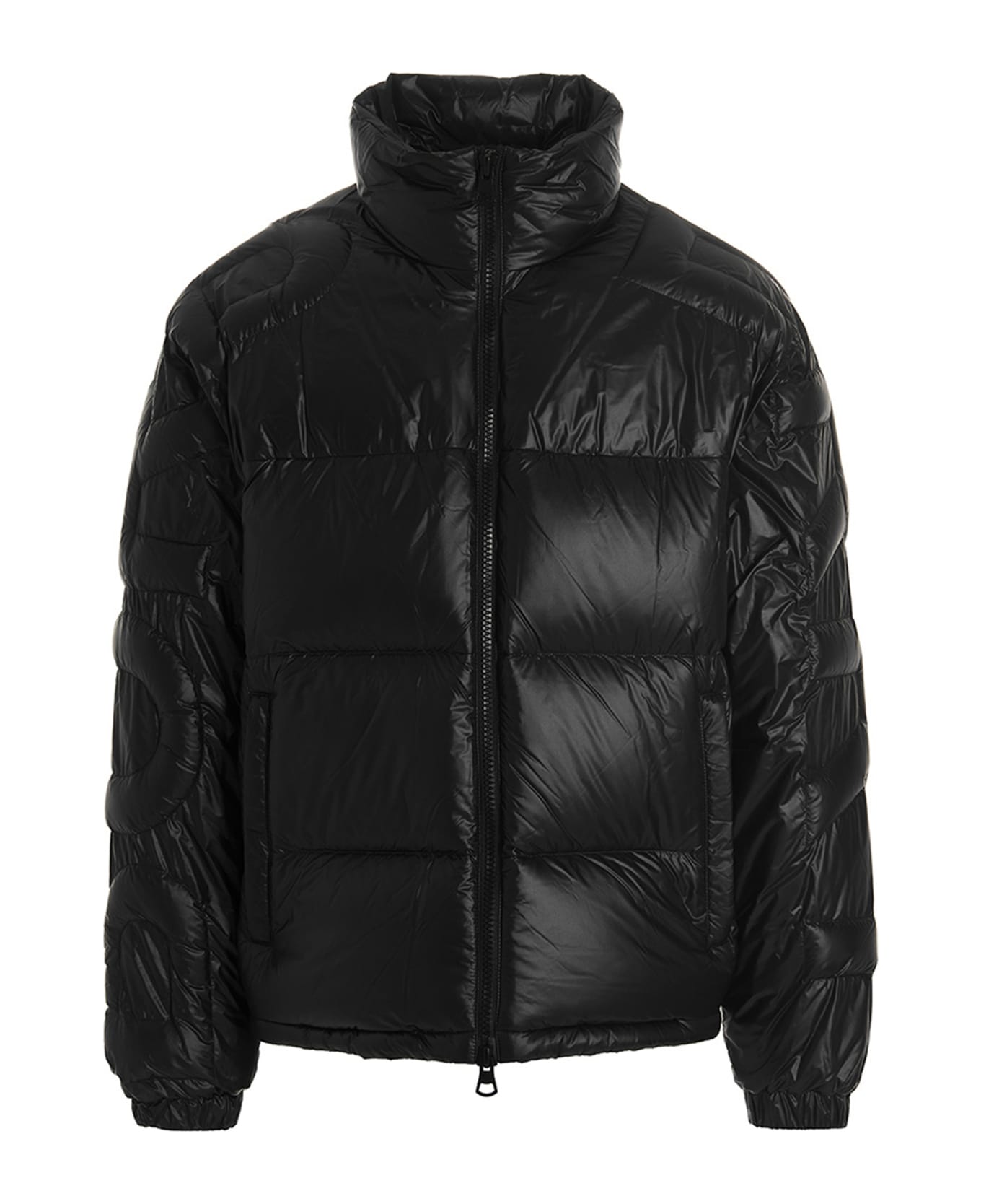 Ladock' nylon down jacket with goose down padding, channel collar, double zip slider closure, side zipper pockets, inner snap button pocket, inner slip pocket, long sleeves with elasticated cuffs, drawstring hem, logo.
