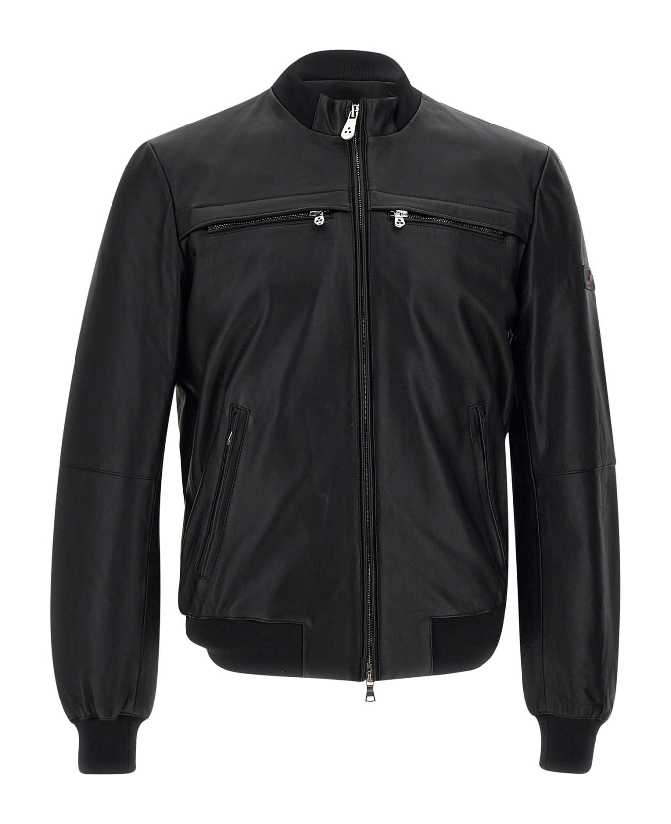Peuterey "Sands Leather" men's biker jacket, black, in soft nappa leather with seams treated with wax, stand-up collar, four overall front pockets with zip, central fastening with double-slider zip, cuffs and part of hem in knit, regular but slim fit, also ideal for informal looks, comfortable and practical in everyday life, ideal in high and low season.