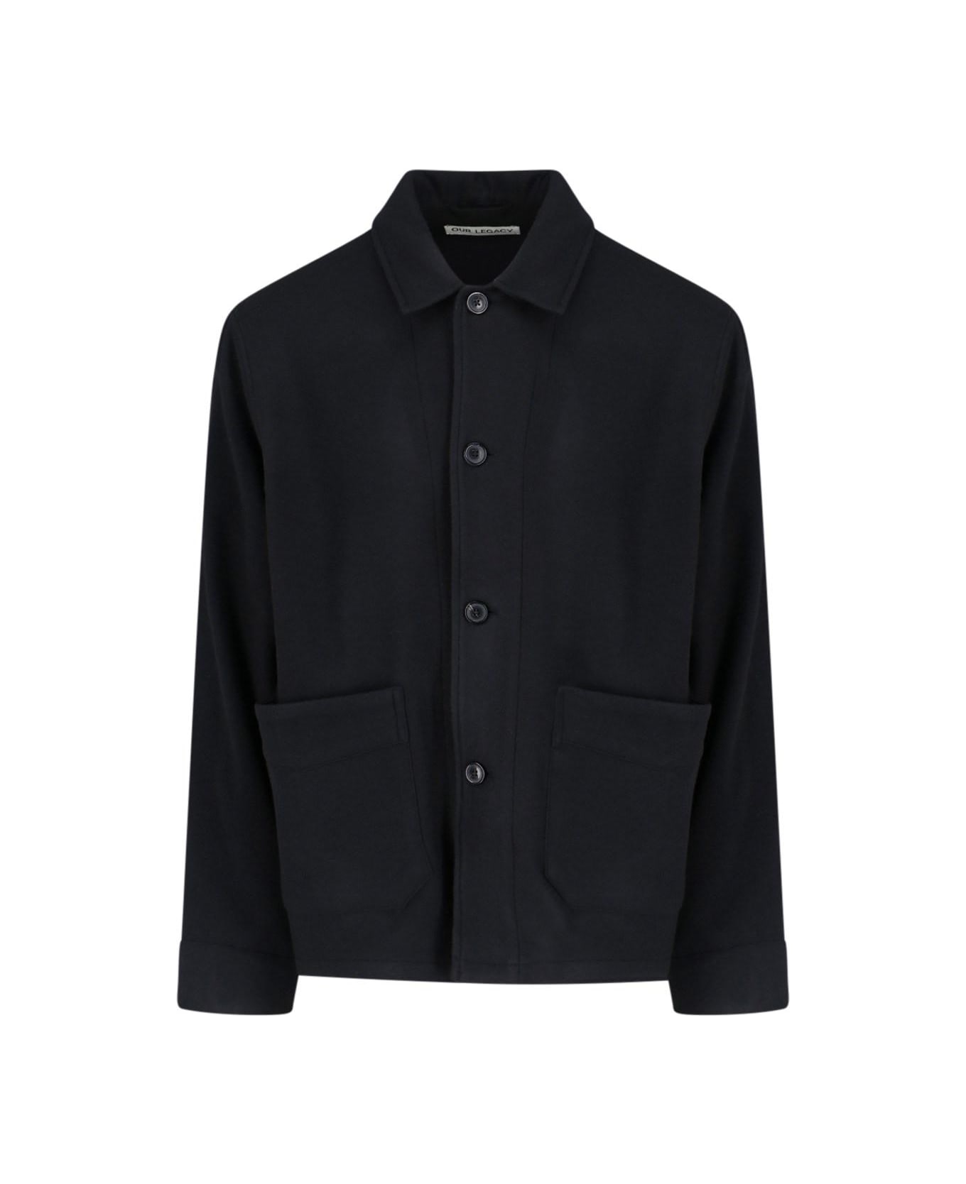 Our Legacy 'Archive Box' black jacket in virgin wool with classic collar, button closure, two front patch pockets, straight hem.