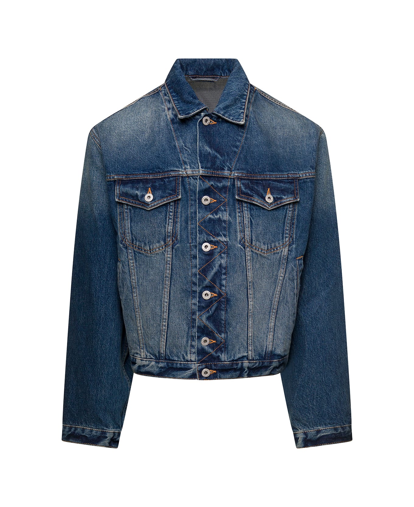 Blue Denim Jacket With Logo Patch And Contrasting Stitching In Cotton Denim Man