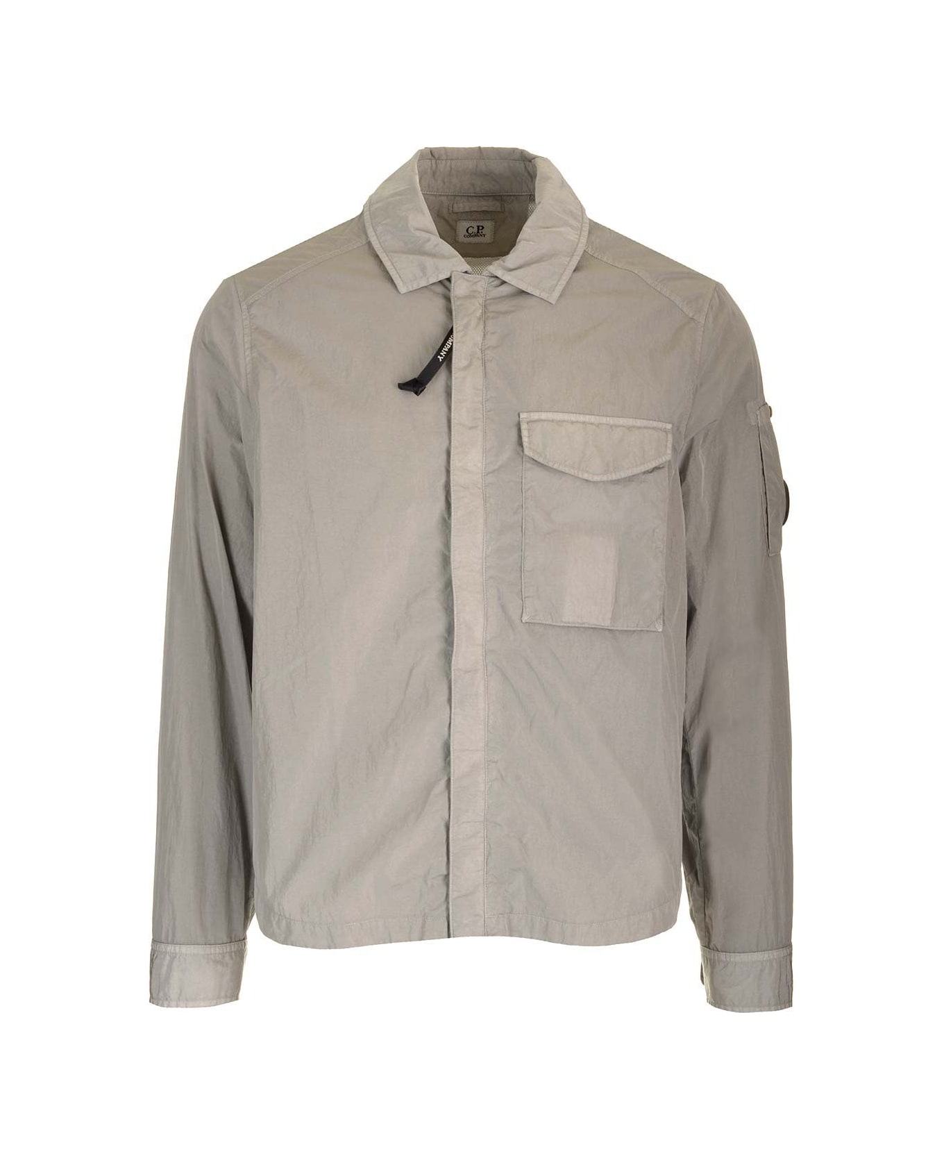 Black overshirt from C. P Company, in "Chrome-R" garment-dyed pre-consumer recycled fabric. Regular fit, classic collar, hidden zip closure with buttons, chest pocket with flap, adjustable cuffs.