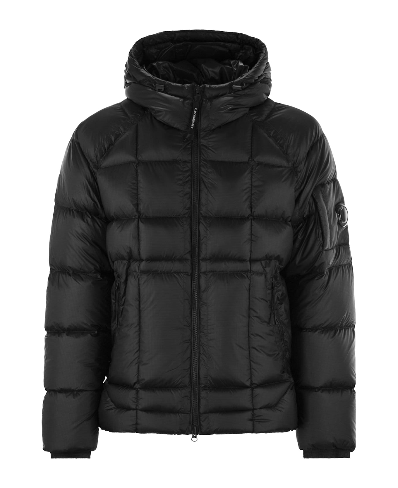 Hooded down jacket made of D. D. Shell, an opaque 7-denier micro-ripstop nylon. The lightness and transparency of the material emphasises the garment's construction. Direct Down injection process. - Adjustable hood - Double-slider full zip closure - Side zip pockets - Pocket with lens on sleeve - Ribbed cuffs - Regular fit DESIGNER ID: 17CMOW210A006099A 999