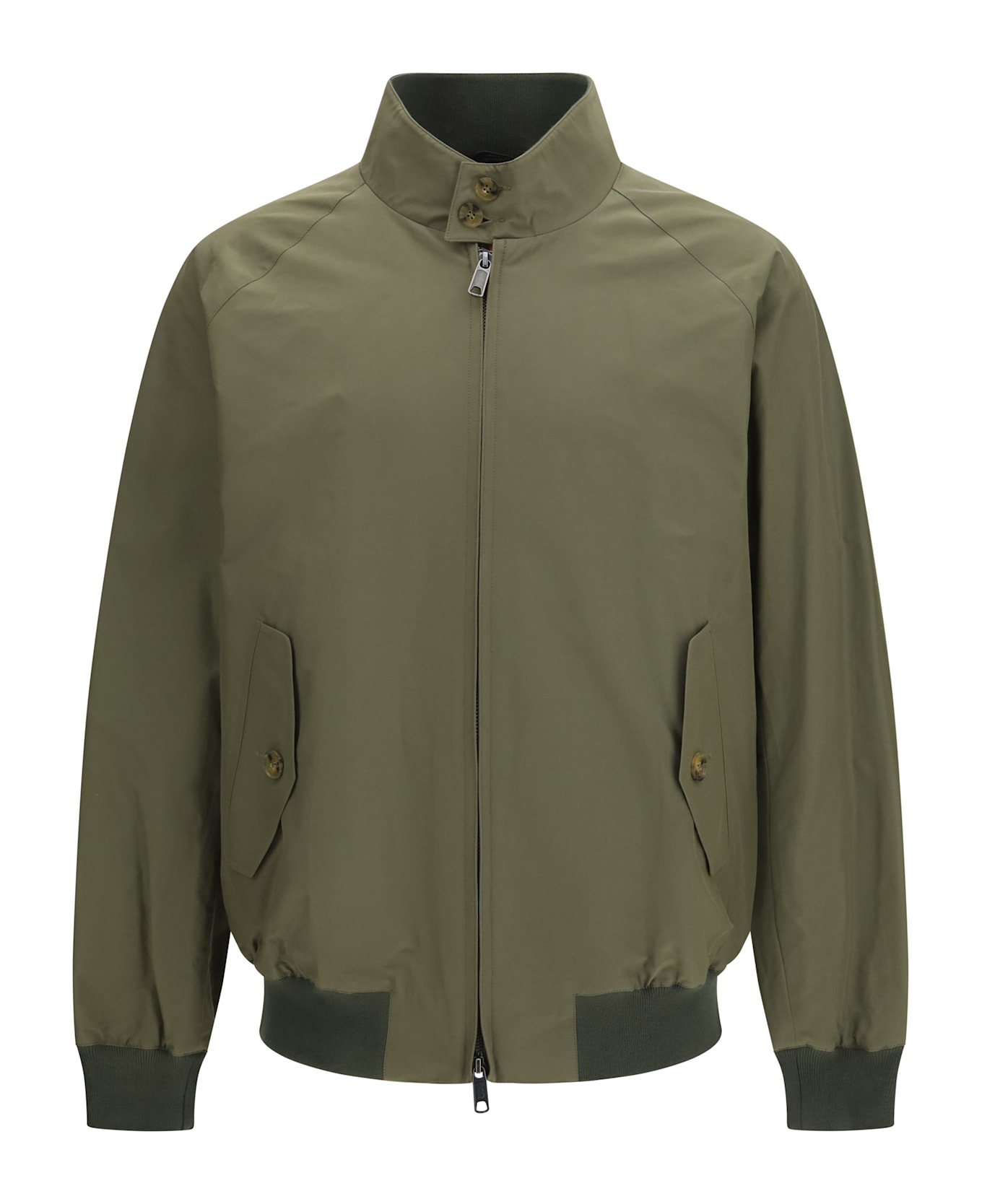 The g9 harrington jacket by baracuta is a timeless classic that combines style and functionality. the baracuta two-button collar with ribbed interior and double-slider zip closure with logo ensure protection and practicality, while the raglan sleeves offer greater freedom of movement. the front flap pockets with buttons, the inside pocket in matching fabric with a custom button, and the ribbed cuffs and waistband complete the functional design. made from baracuta cloth and lined with fraser tartan, this jacket is perfect for those seeking comfort, elegance, and protection from the elements.