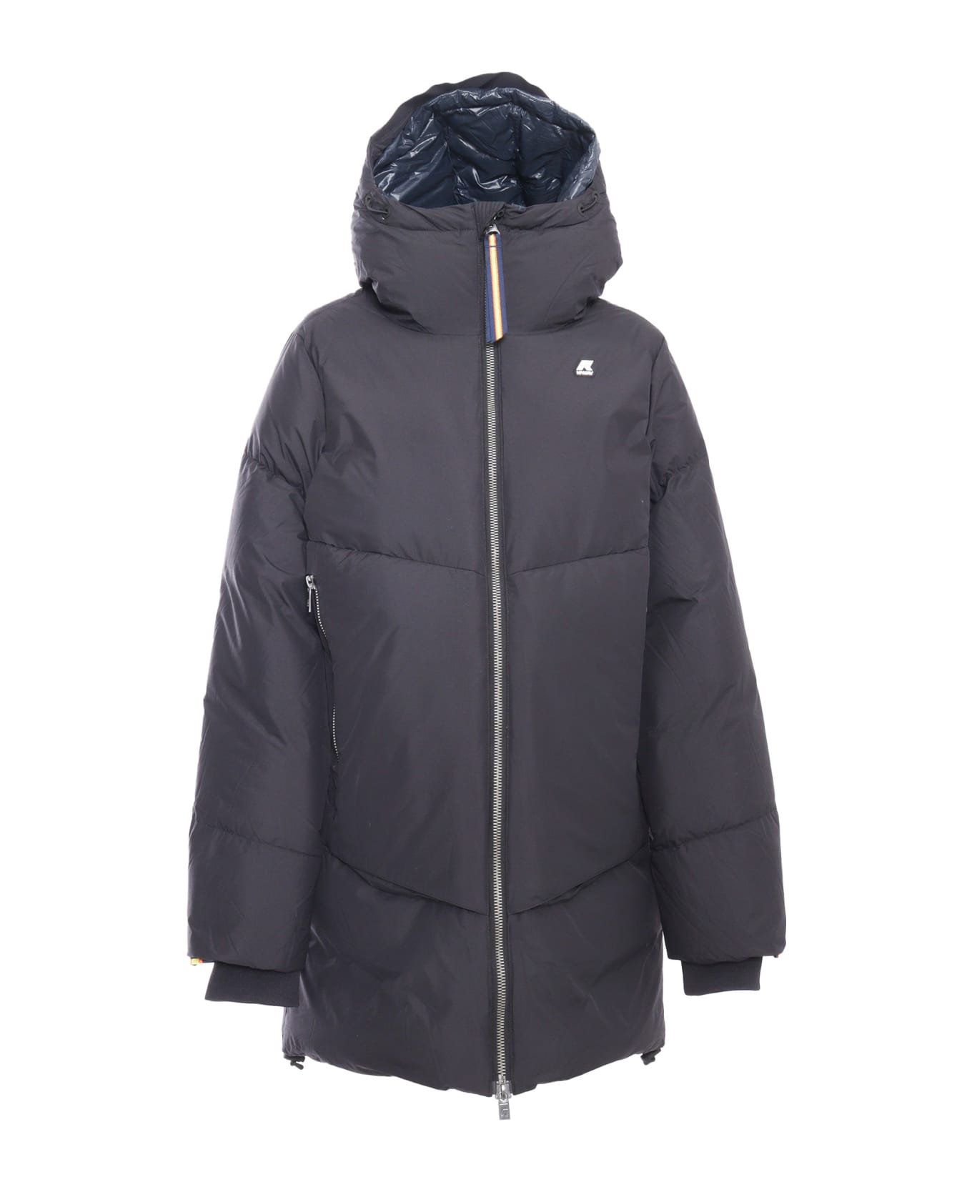 Water repellent, windproof and breathable nylon jacket, down padding, quilted, double hood, fastening with zip and branded zip puller, cuffs with internal gaiter, bellows pockets with zip, drawstring bottom, white silicone logo, regular fit
