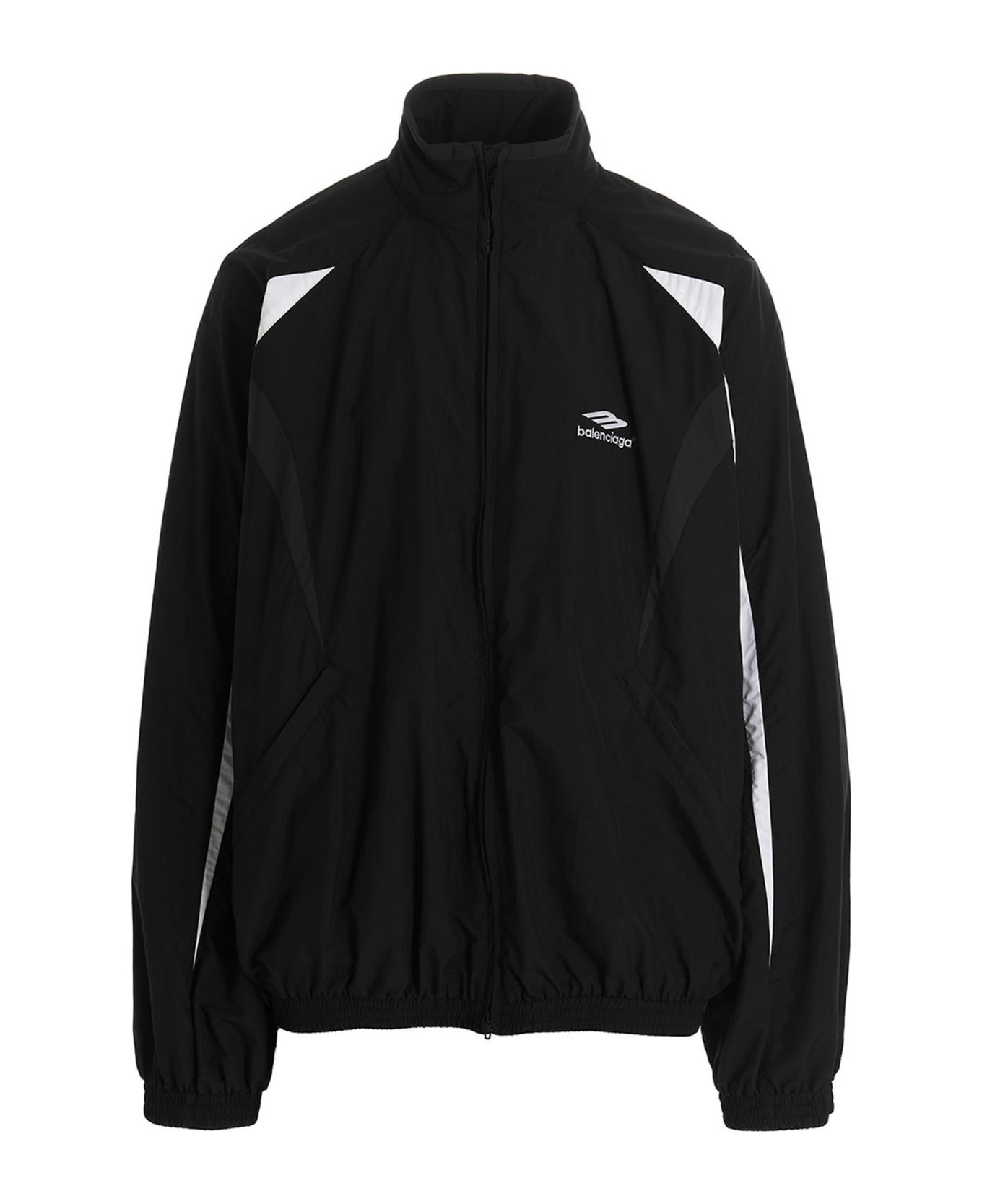 Nylon jacket with front embroidered logo, contrast color details, zip closure, high collar, long cuffed sleeves and aelastic hem. Composition: