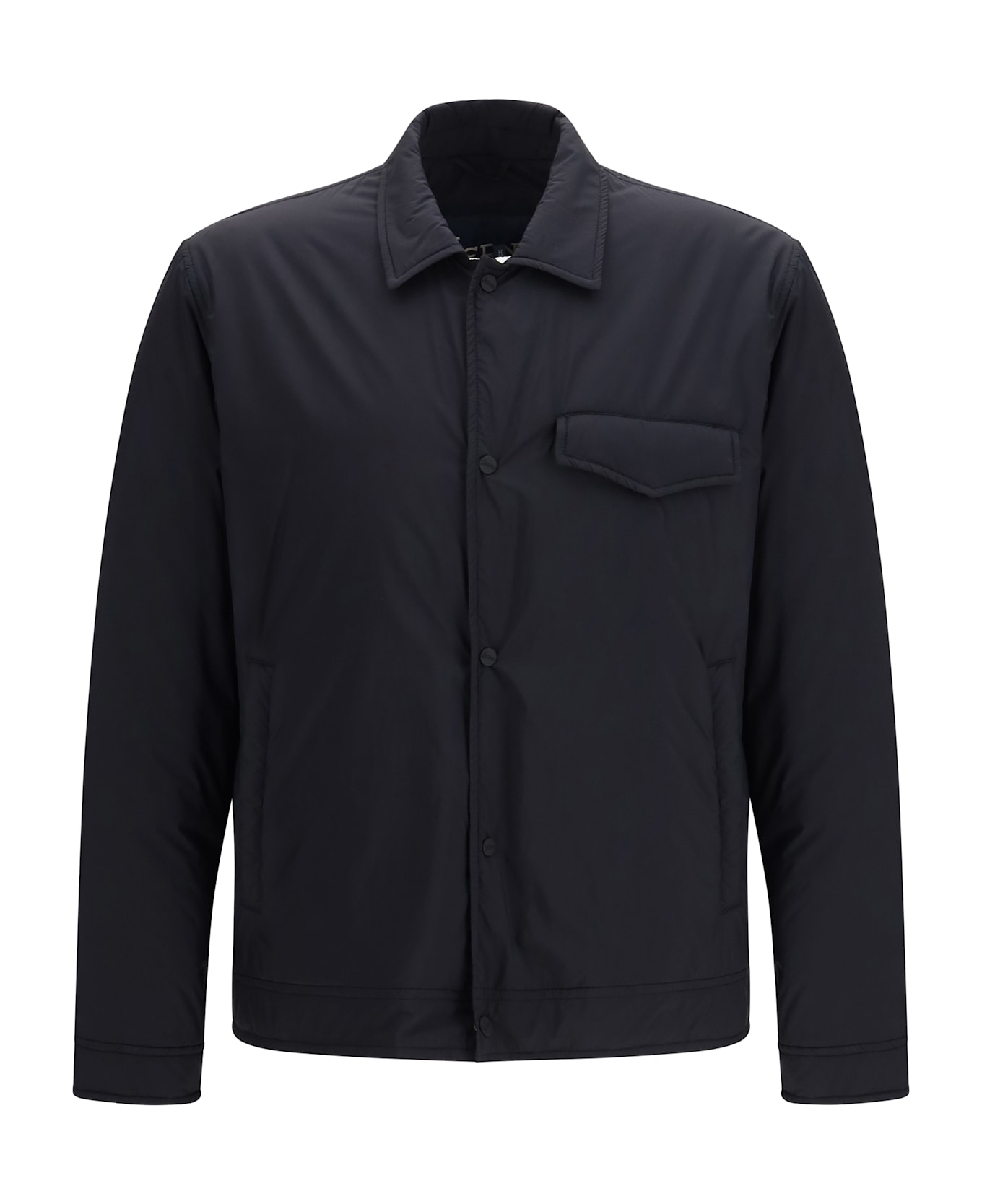The recycled nylon microfiber shacket by herno combines functionality with contemporary style. crafted from microfiber with a light reverse-side coating, it features a water-resistant, soft-touch, matte texture. the design includes soft padding, making it ideal for transitional seasons, along with a shirt collar, long sleeves, and buttoned cuffs. it is finished with a flap chest pocket, welt pockets, and snap-button front closure for practicality and refinement. the piece belongs to the herno globe lab line, which highlights garments partially made with sustainable materials. regular fit.