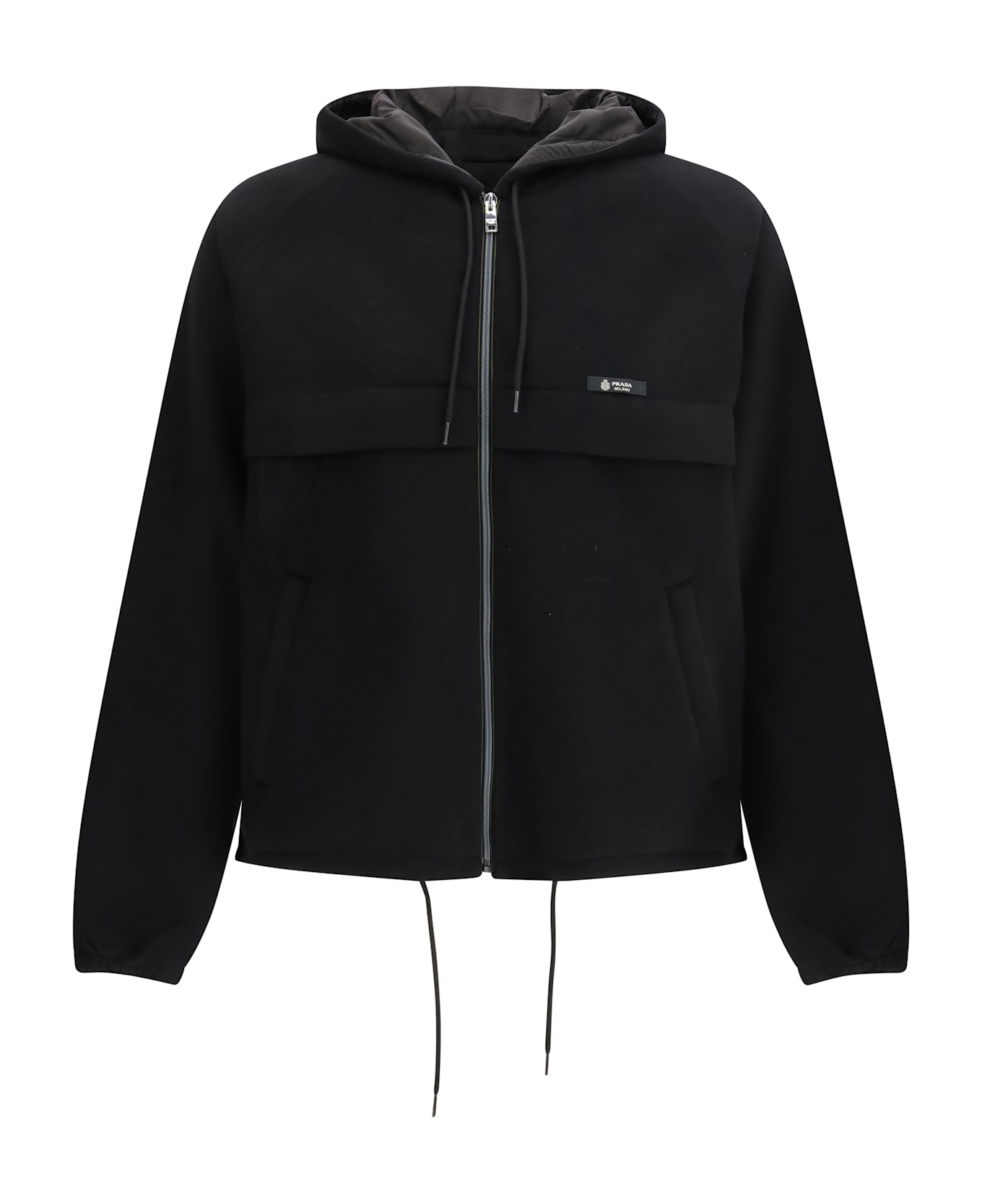 The technical hooded blouson by prada blends modern precision with an effortlessly dynamic attitude. cut in a regular fit, it features a clean zip closure, adjustable drawstring details, and raglan sleeves that enhance ease of movement. pressed pleats applied after construction underline prada s architectural approach to outerwear, while the recycled-material lining reflects the brand s commitment to responsible craftsmanship. discreet welt pockets and a straight hem complete this refined yet functional layer.