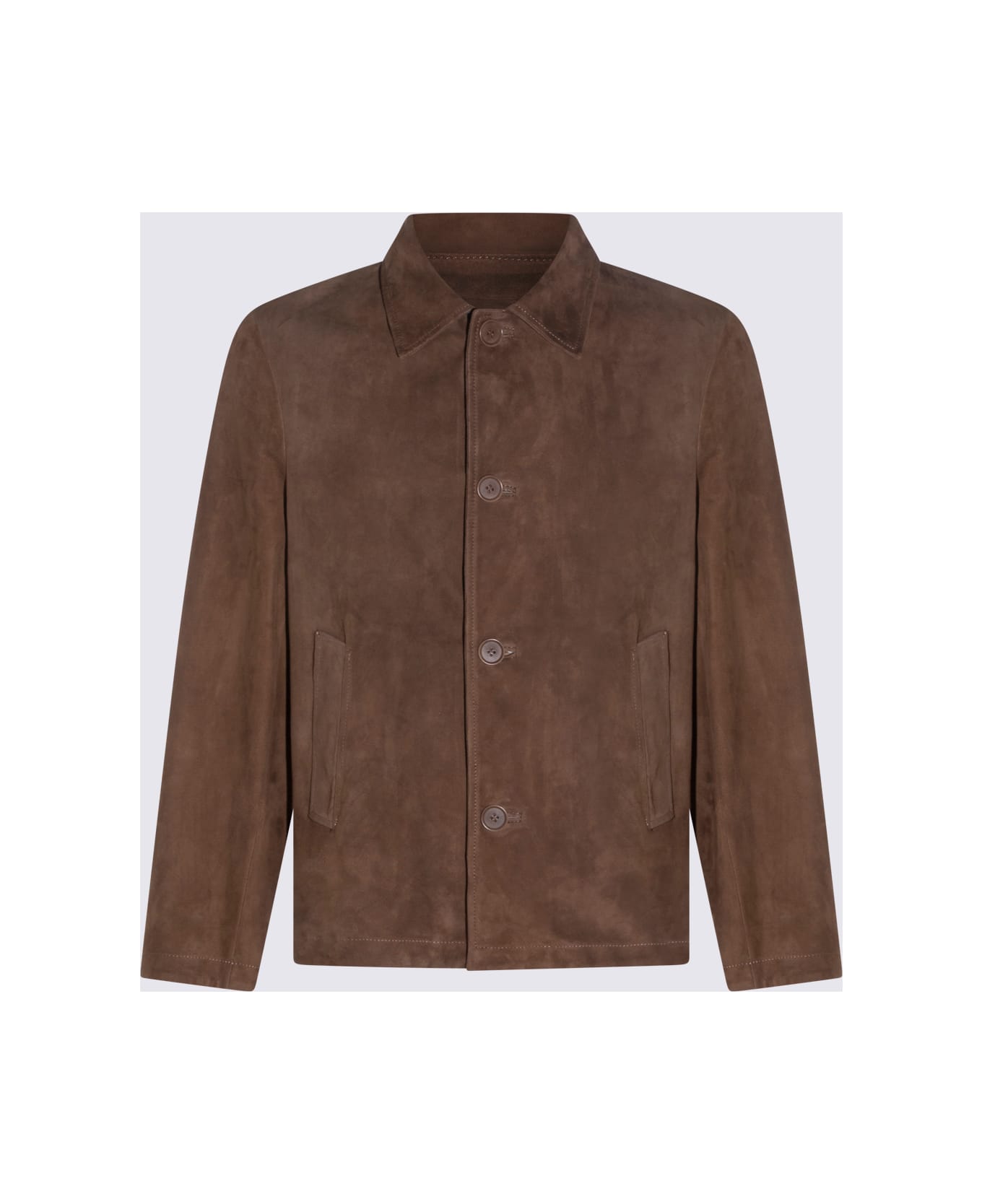 Brown leather jacket from Salvatore Santoro featuring long sleeves, buttons fastening, pockets, shirt collar and regular vestibility.