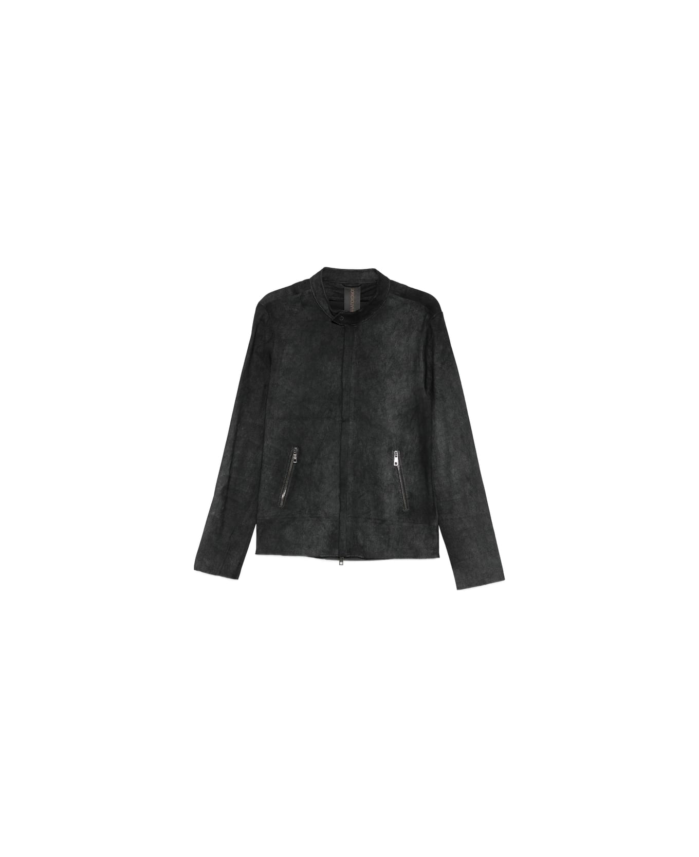black zip fastening side zipped pockets band collar leather