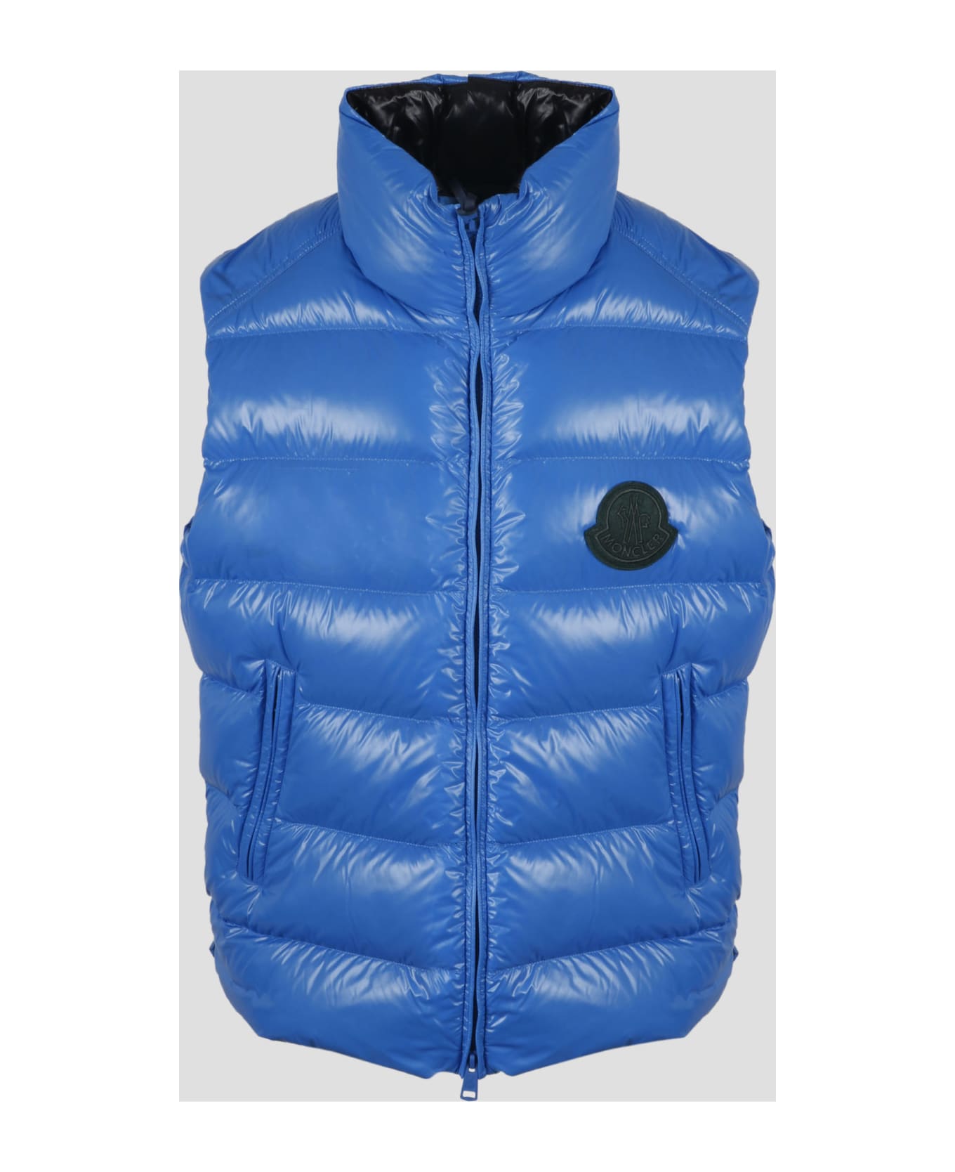 Moncler Parke down gilet, in recycled nylon laqué with patch logo on the chets. - SS23 - Regular fit - High neck - Zip closure - Side welt zipped pockets - Logo patch on the chest - Made in Moldova - 100% Polyamide