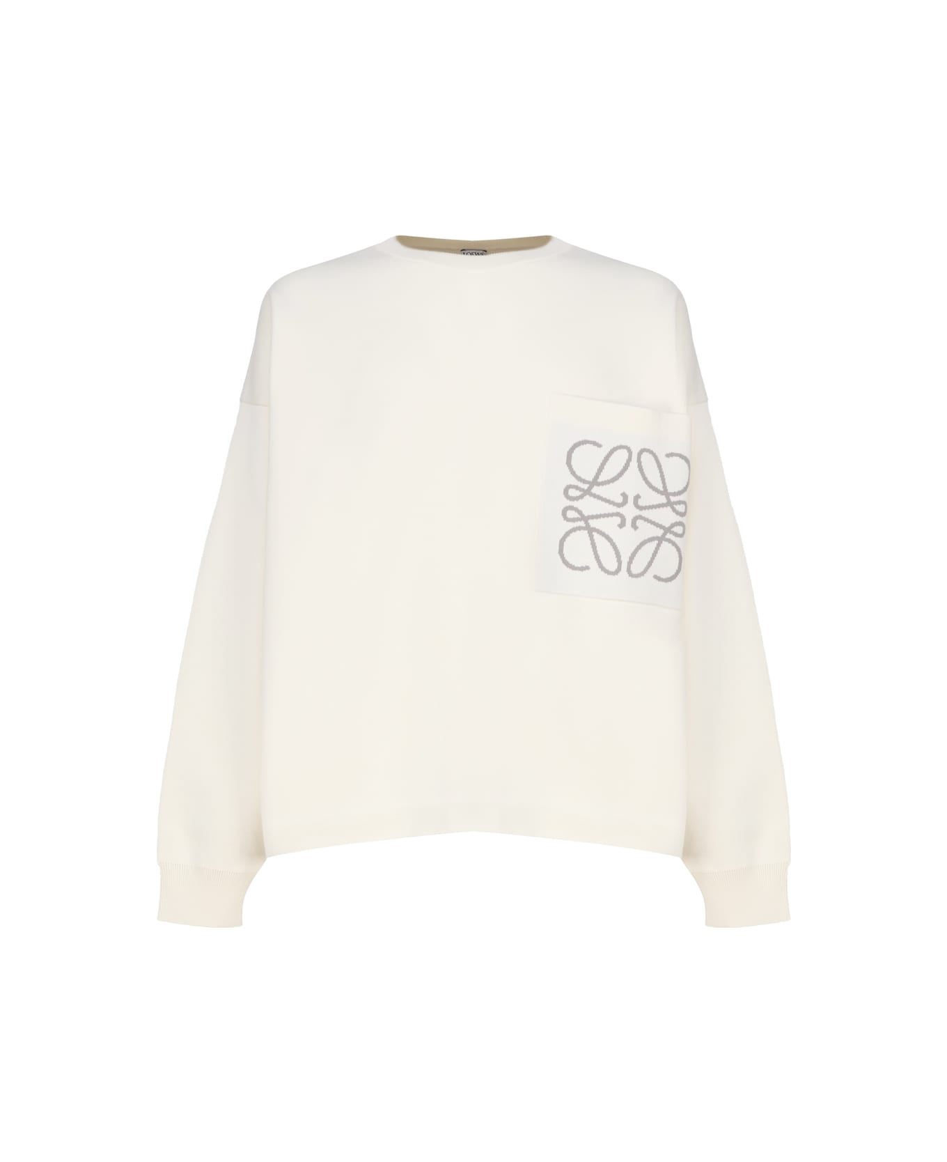 Soft white Anagram Logo Sweater In Cotton from Loewe -Sweatshirt with logo pocket on the chest -Round neck -Long sleeves -Ribbed collar, cuffs and hem -Made in Italy -Colour: White -100% Cotton