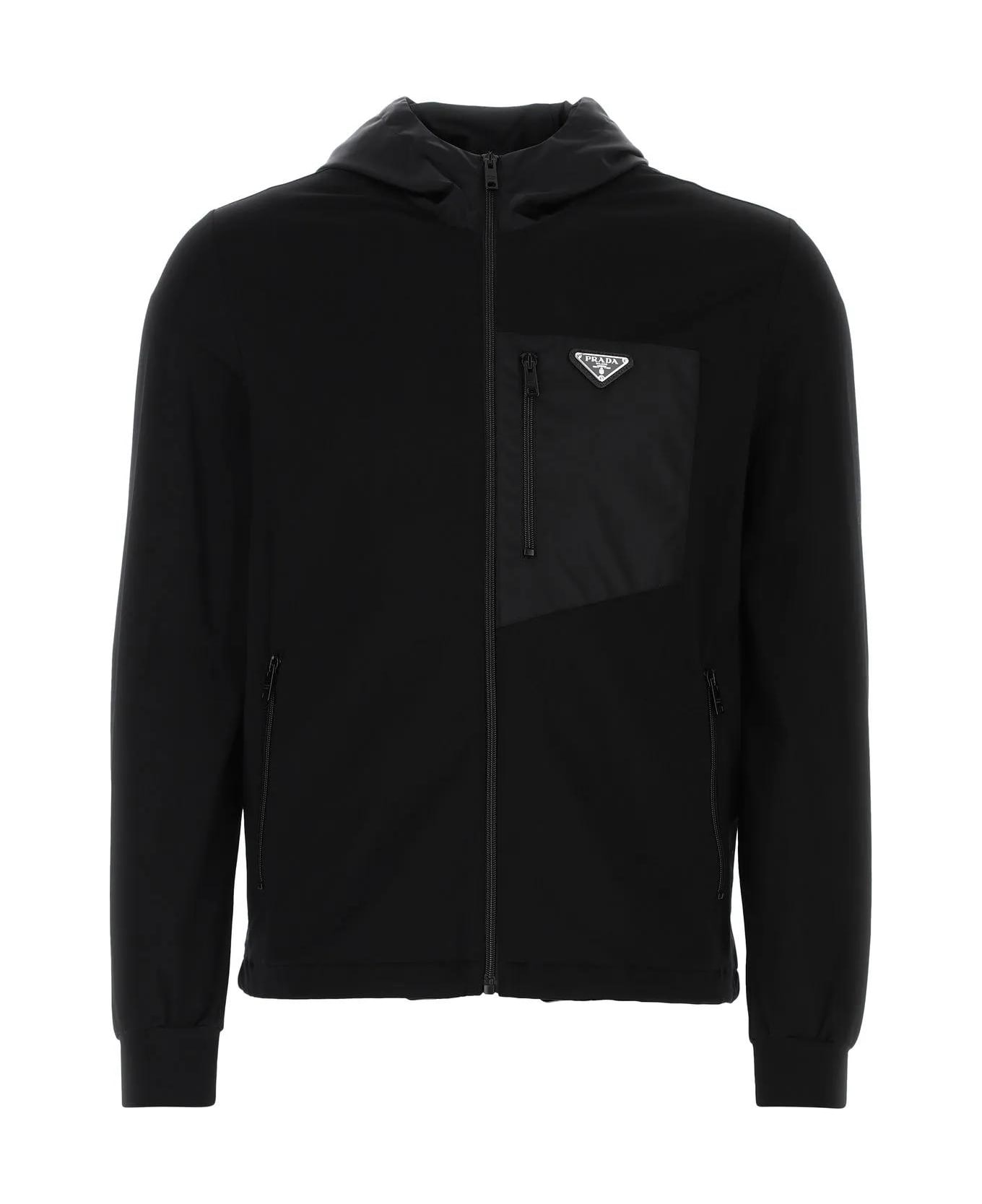 Sweatshirt realized in stretch cotton enriched by iconic logoed triangle on the chest. - Re-Nylon hood - Zip closure - Re-Nylon chest pocket and two zip pockets at the front - Inner drawstring on the hemline Composition: Exterior: 92% Cotton 8% Elastane