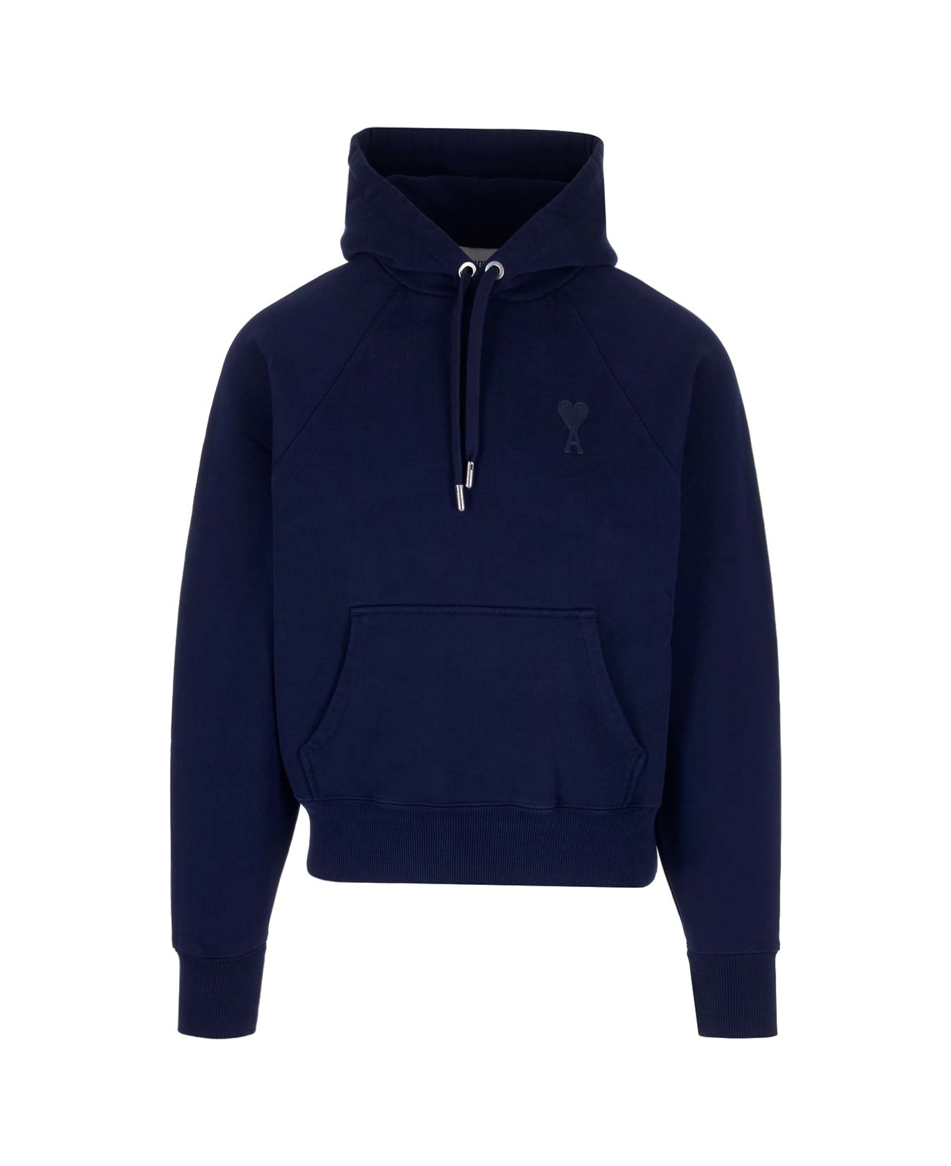 Blue hoodie from AMI in cotton, tone-on-tone logo embroidered on one side of the chest, hood with drawstring, kangaroo pocket. Composition: MAT PRINCIPALE:100% COTON BIOLOGIQUE