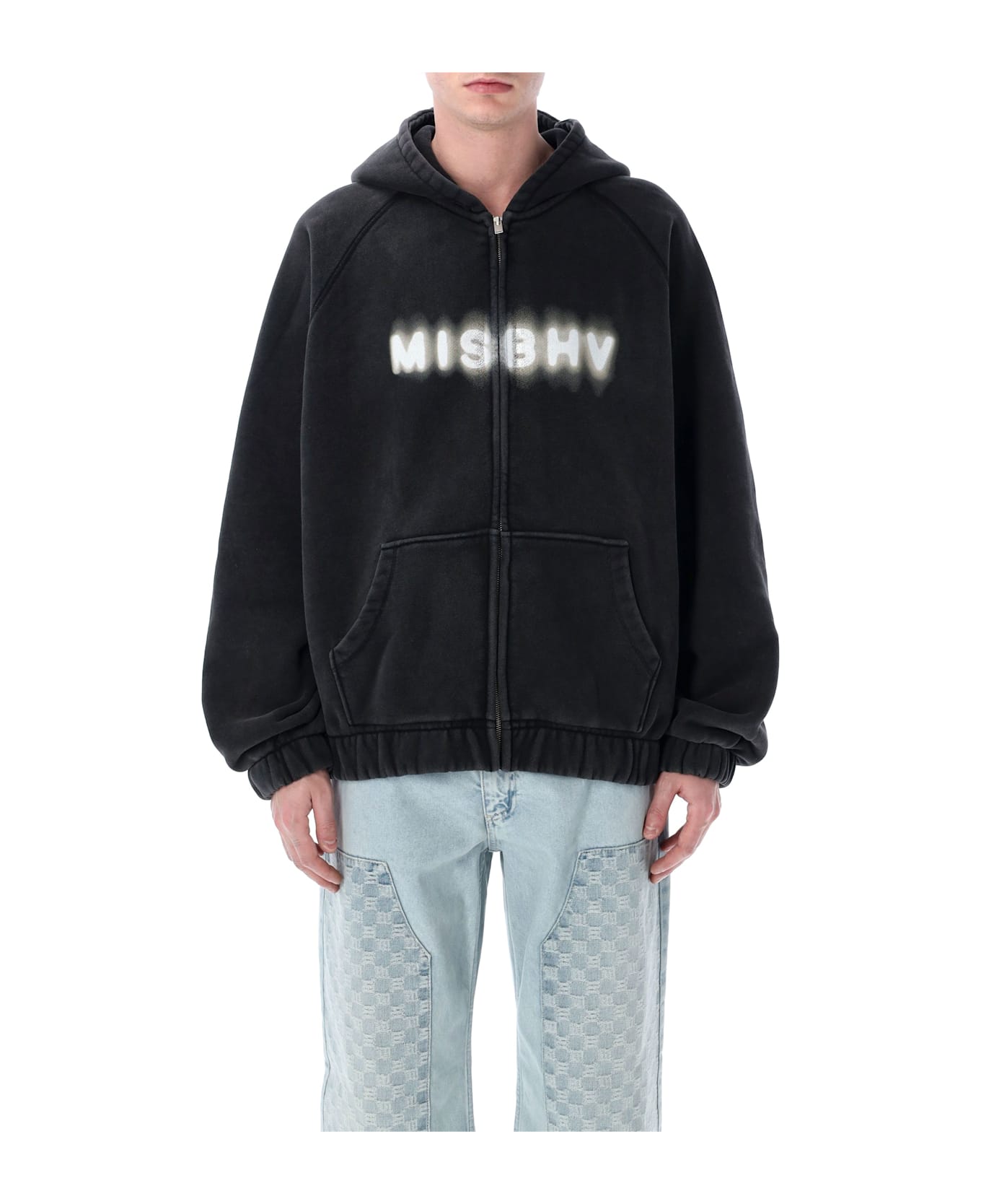 Community Zipped Hoody By Misbhv. Featuring: Oversized Fit Cotton French Terry Hood Zip Closure At Front Ribbed Cuff And Hem Printed Logo At Front Washed Effect Model Is 1,90 M And Wears Size L