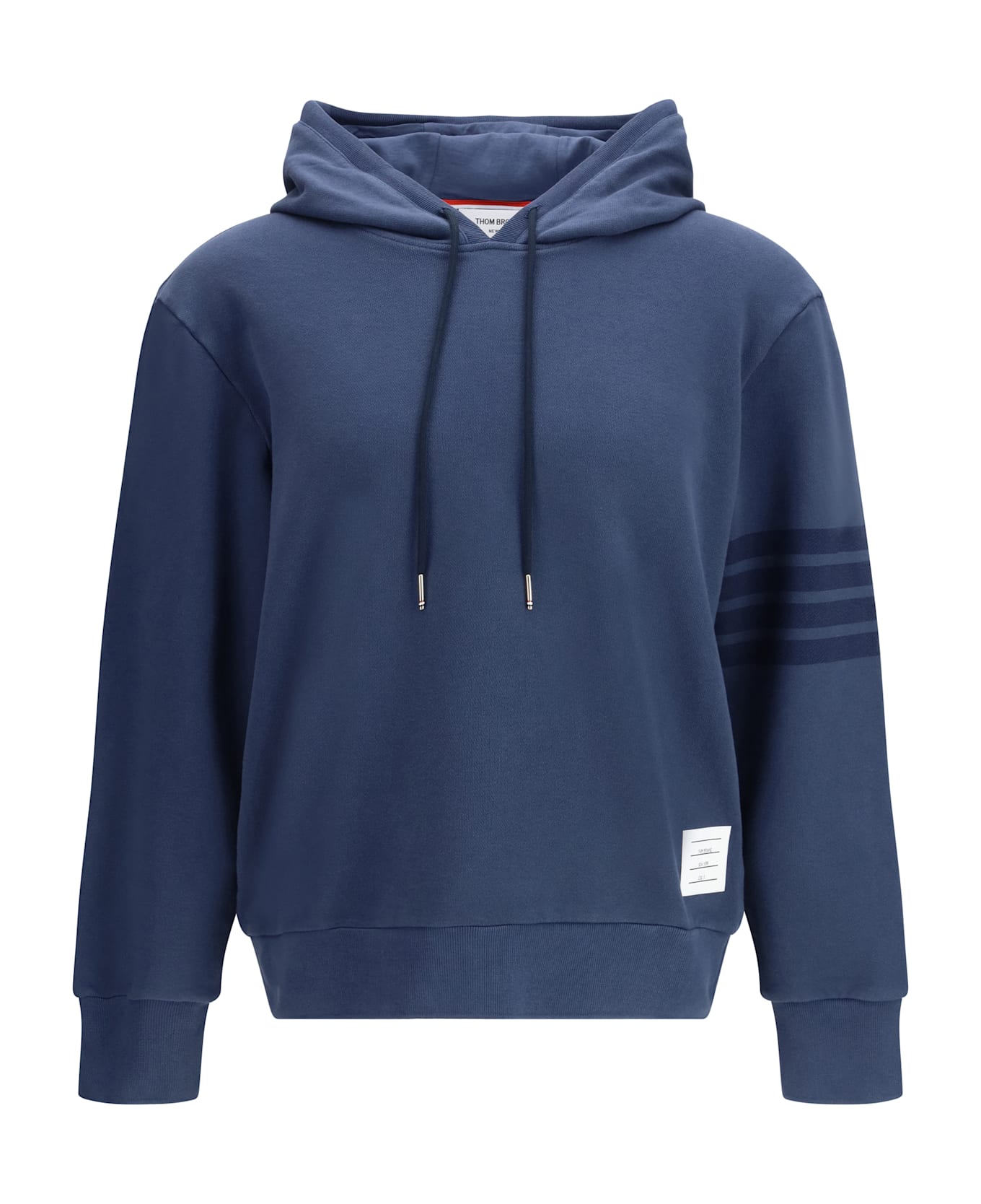 The cotton hoodie by thom browne is a casual-chic garment with an iconic and refined design. the drawstring hood offers an adjustable fit, while the ribbed hem and cuffs ensure a comfortable and secure fit. the iconic horizontal stripes on the left arm and the signature patch on the front add a distinctive and recognizable touch of the brand. a must-have for those looking for a sporty yet sophisticated look with a touch of luxury. Composition: 100% % Cotton