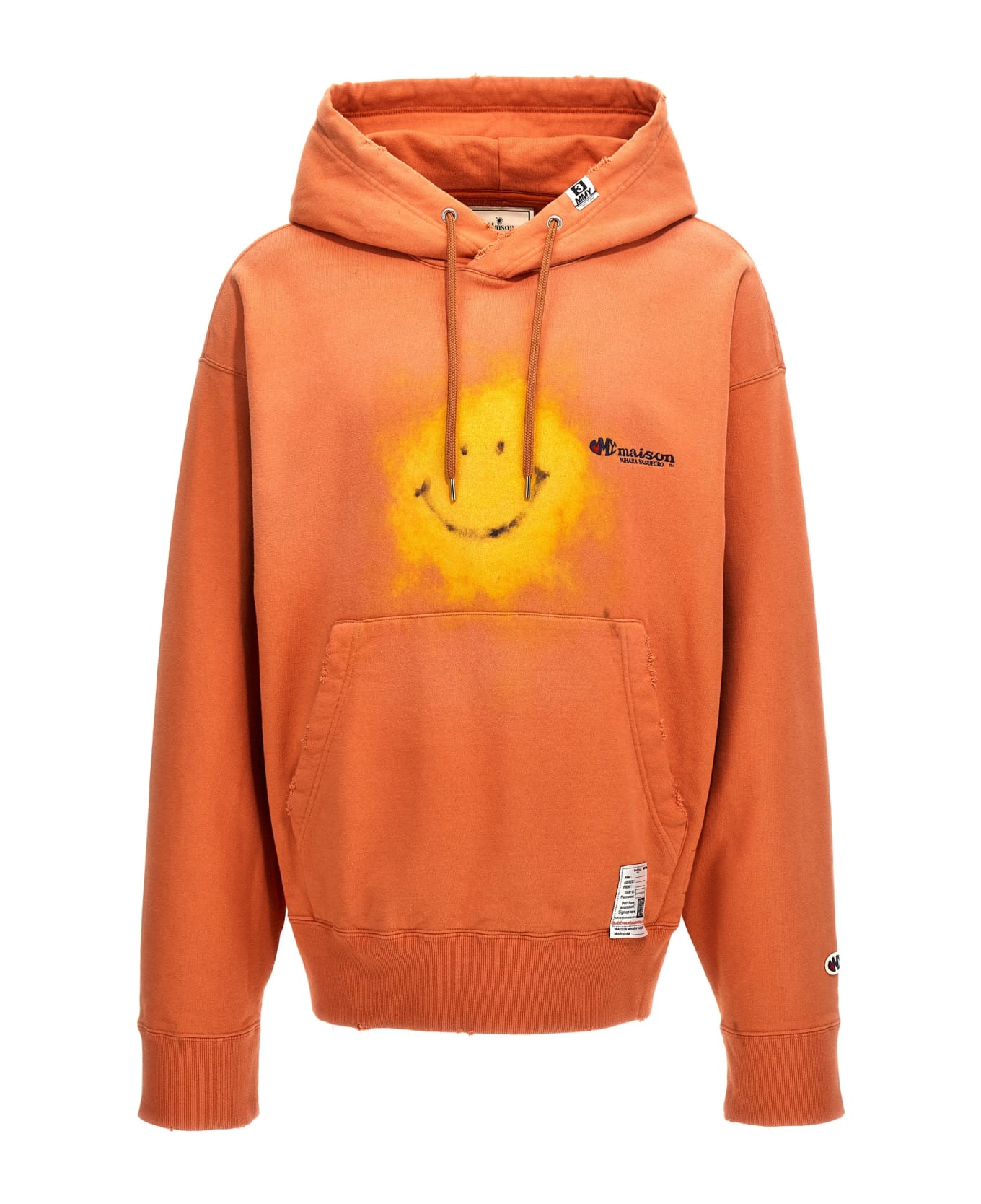 'Distressed' cotton hoodie with used-effect details, front print, kangaroo pocket, long cuffed sleeves.