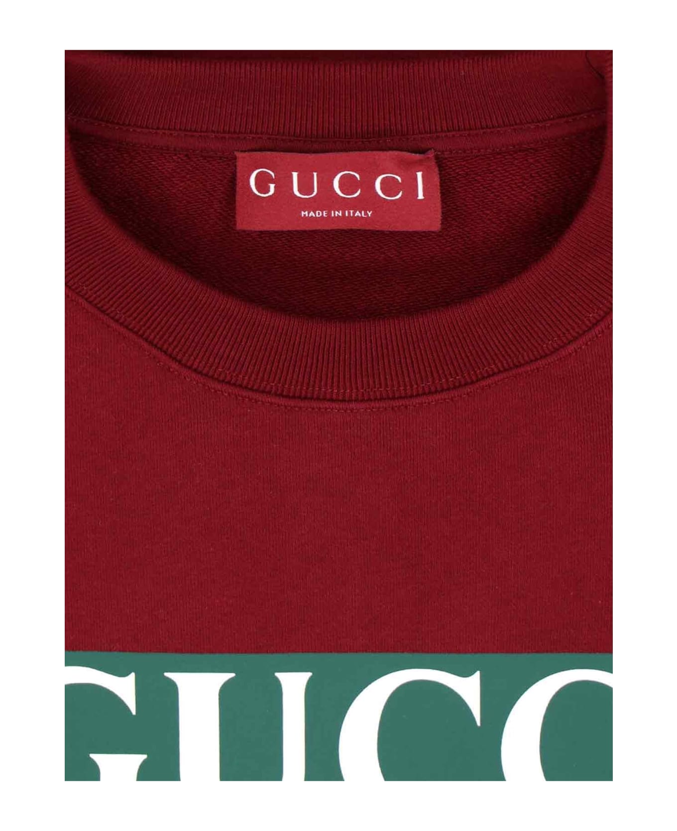Gucci logo crewneck sweatshirt in red cotton with white 'GG' crossover logo print on the front, green and blue details, ribbed trim, straight hem.