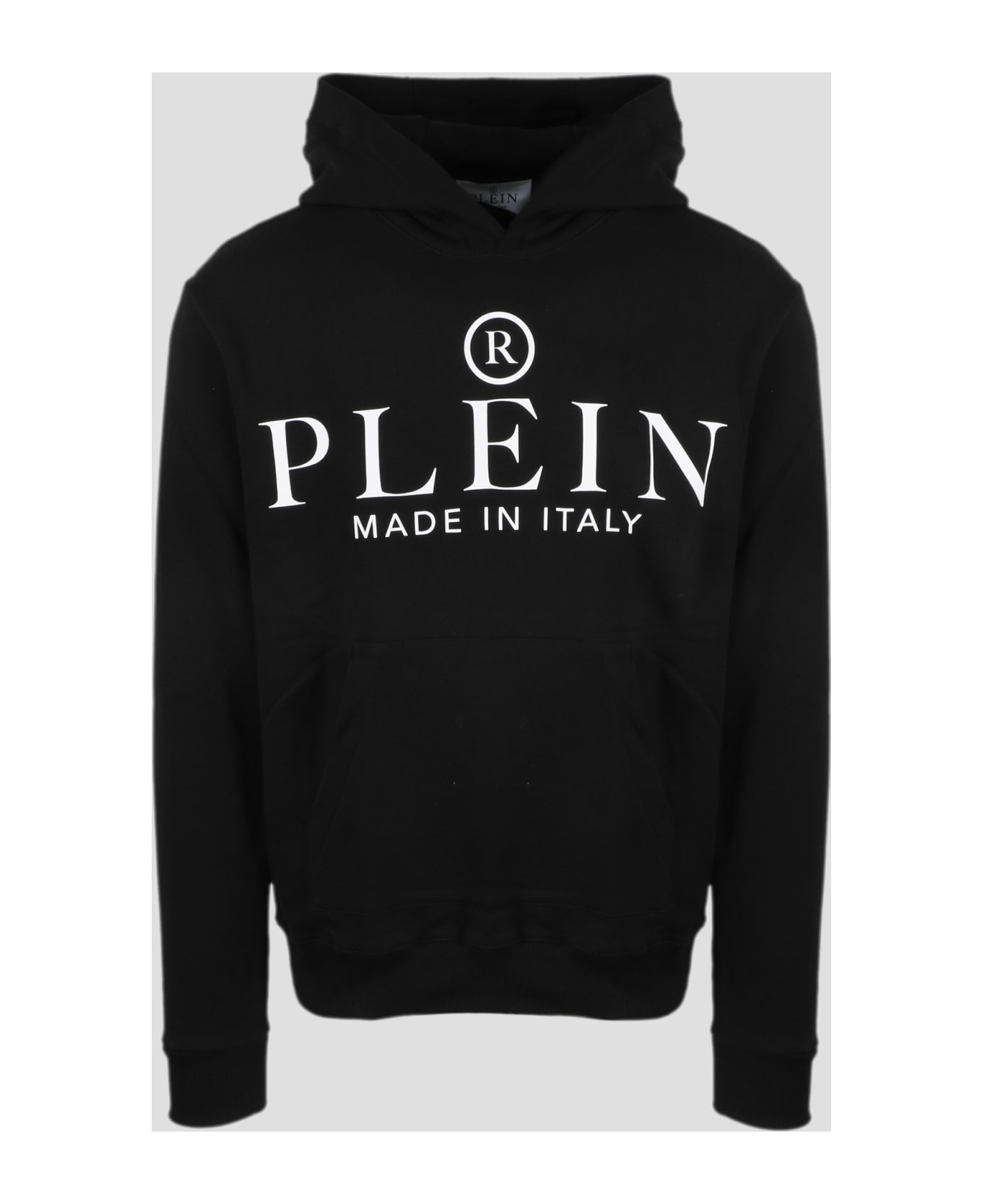 Philipp Plein hooded sweatshirt in cotton jersey with logo print on the front. - SS23 - Regular fit - Hexagon PP patch detail on the hood - Contrasting logo print on the front - Kangaroo pocket - Ribbed cuffs and bottom - Made in Italy - 100% Cotton